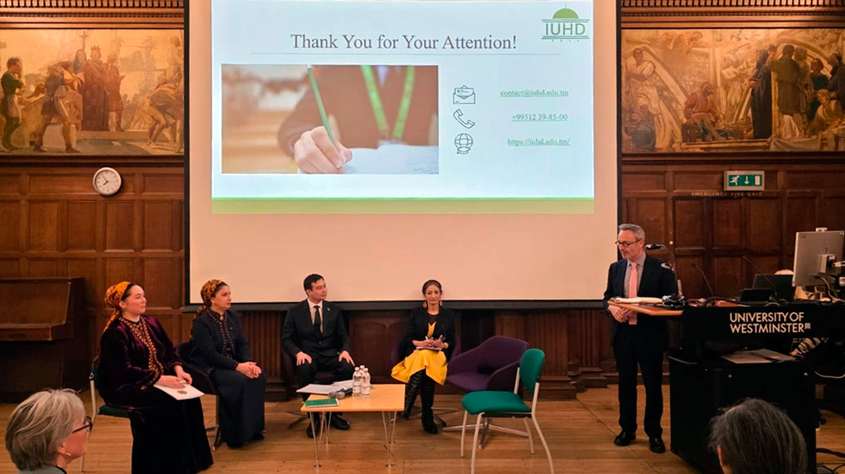 Важным событием визита стала международная конференция в Вестминстерском университете, посвященная 35-летию независимости Туркменистана. Представители МУГНиР выступили с докладами на тему внешней политики страны, основанной на принципах постоянного нейтралитета, а также рассказали о достижениях Туркменистана в сфере образования.
