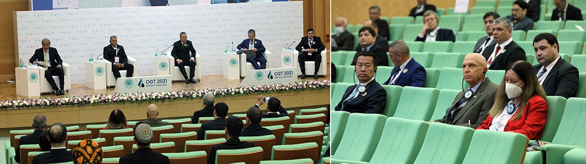 На торжественной церемонии открытия форума «Нефть и газ Туркменистана–2021» собравшиеся с большим вниманием заслушали Обращение Президента Гурбангулы Бердымухамедова, направленное к его участникам.