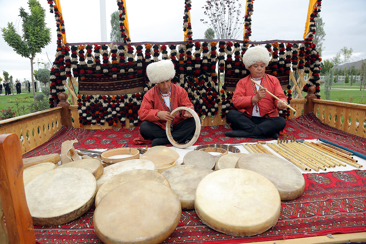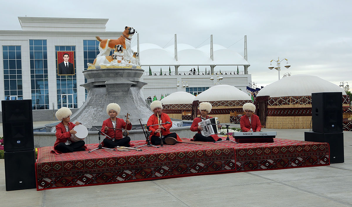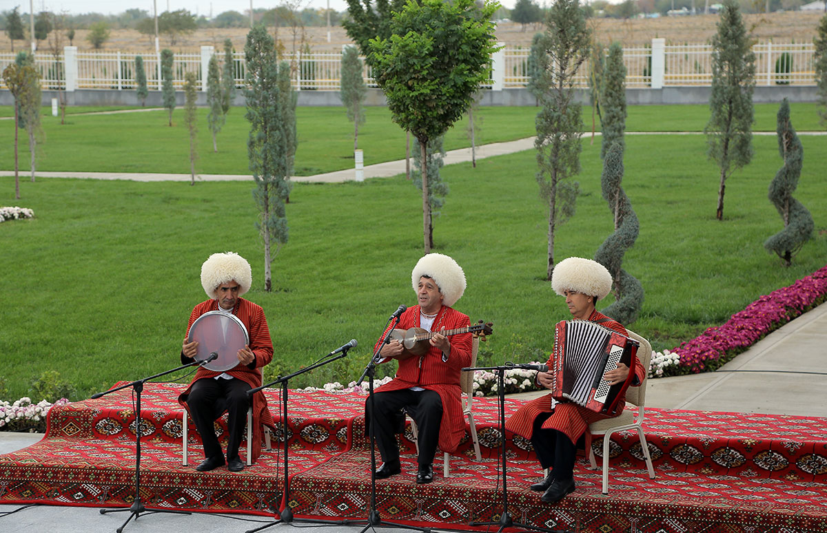 Красочными выступлениями встречают гостей творческие коллективы, бахши-музыканты, воспевающие славное прошлое и грандиозные преобразования современности.
