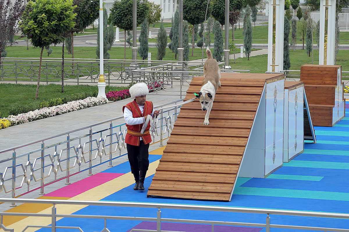Кульминацией праздничных торжеств в честь туркменского алабая стали мероприятия, организованные сегодня в комплексе Международной ассоциации «Türkmen alabaý itleri».