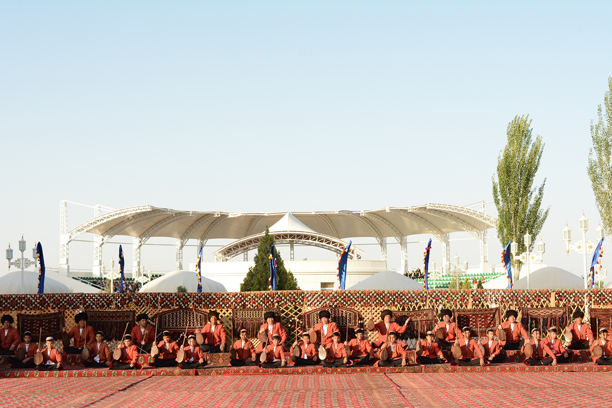 Сегодняшнее торжество приобрело характер большого и красочного туркменского тоя. Многочисленных гостей праздника встречали мастера искусств велаята – известные артисты эстрады, бахши, танцевальные и фольклорные коллективы, которые подготовили к этому замечательному событию свои песенно-музыкальные выступления.