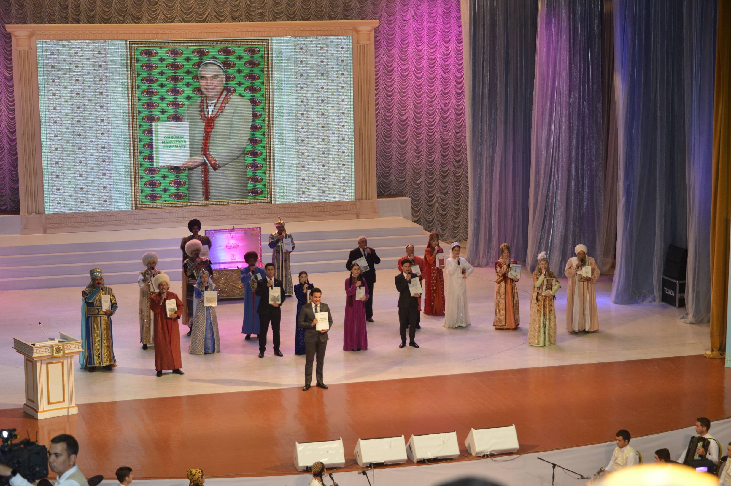 В программе концерта нашло отражение богатство и многообразие современного туркменского искусства, при помощи художественного слова выражалось бесценное значении книг Героя-Аркадага в воспитании молодого поколения.