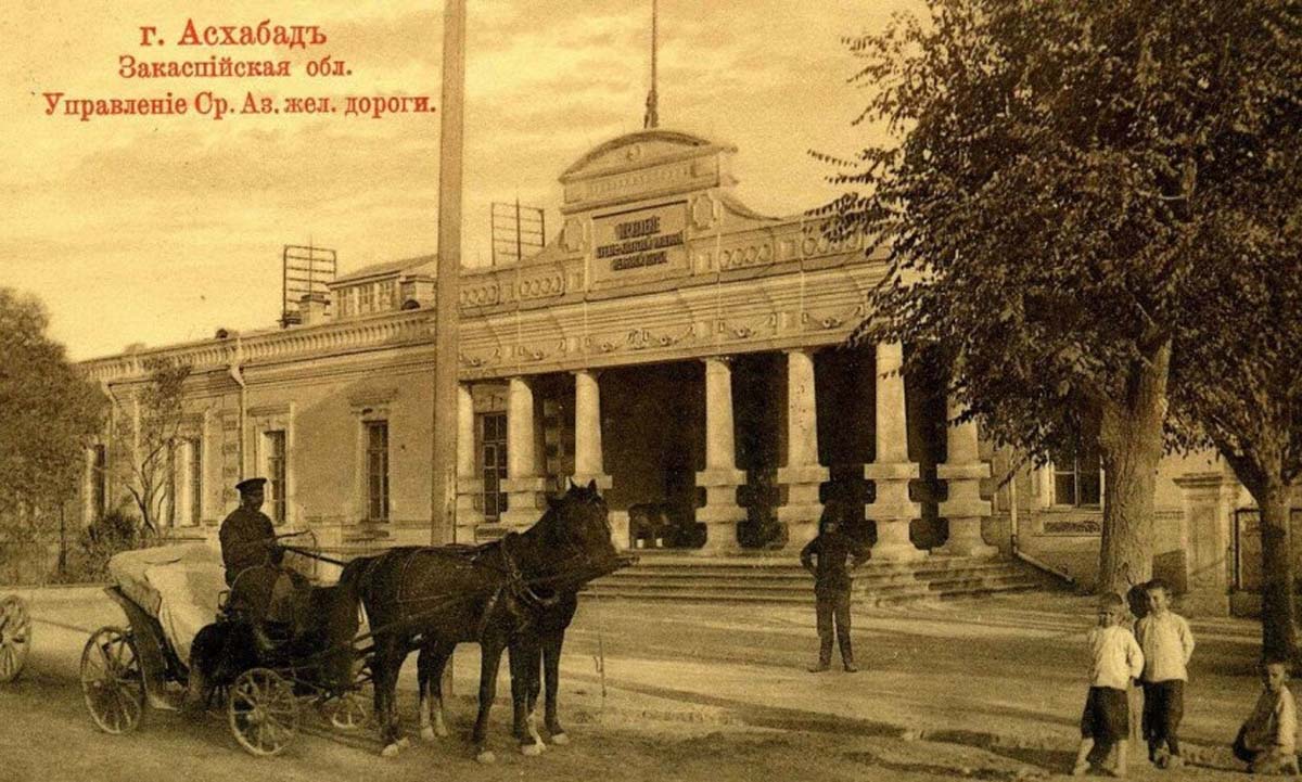 В начале 20-х годов прошлого столетия Асхабад - главный город Закаспийской области. В нём были сосредоточены все отделы Управления Среднеазиатской железной дороги, управление Закаспийского таможенного округа, казначейство, учётно-ссудный банк, отделение Русско-Азиатского банка, Общество взаимного кредита, отделение Государственного банка, акцизное управление, транспортные конторы общества «Кавказ» и «Меркурий».