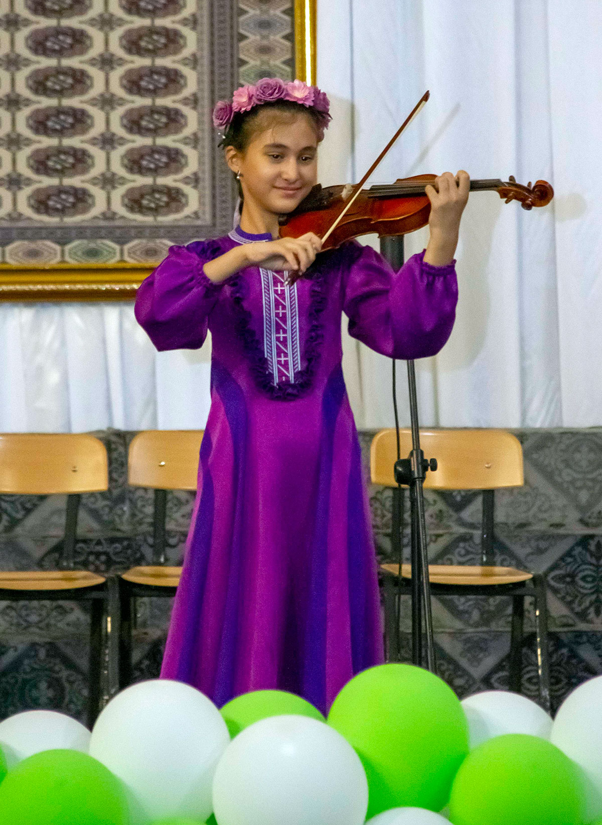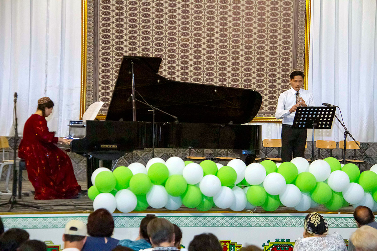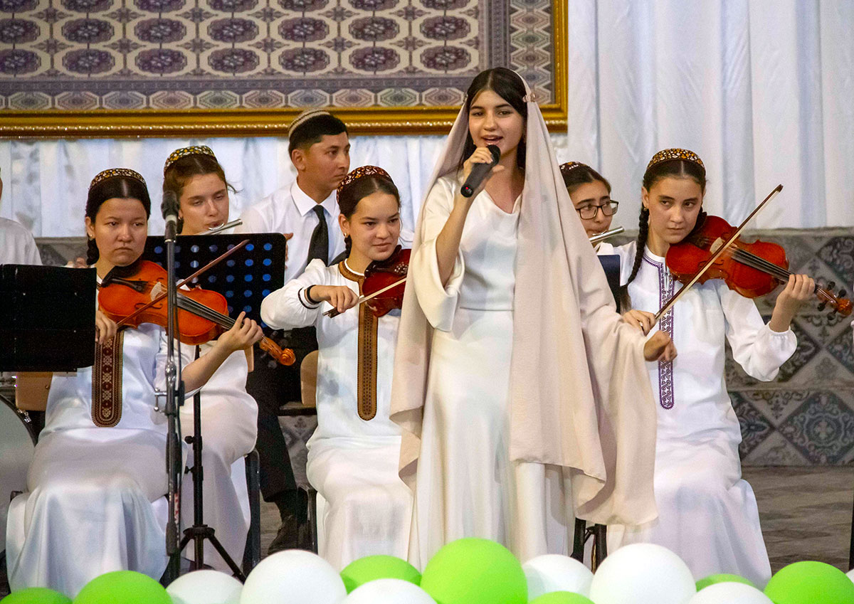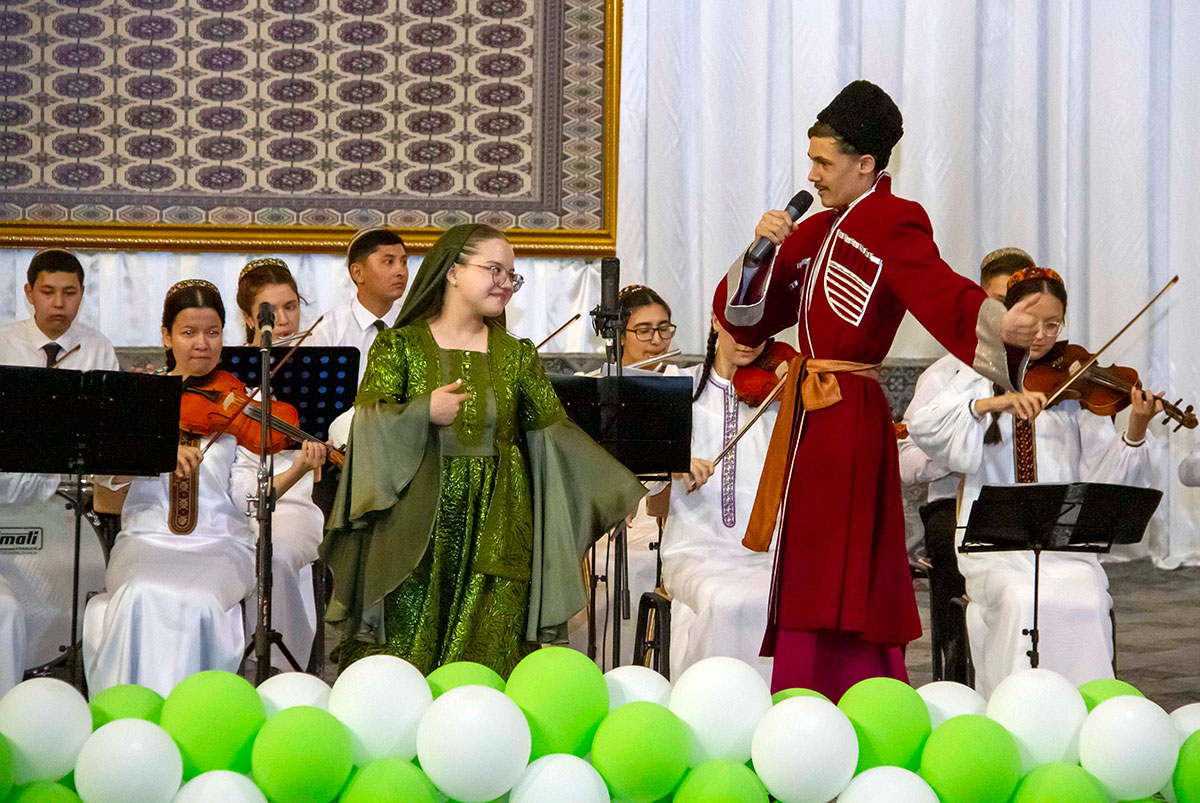 В разнообразной концертной программе наряду с темпераментными выступлениями ансамбля дутаристов «Ylham» Ашхабадской музыкальной школы № 2 и ансамбля «Арчабиль» Дворца Мукамов, в образе Мэри Попинс выступила ученица туркмено-российской общеобразовательной школы имени А.С. Пушкина Ширин Джумаева, а с песней «Маленький принц» из кинофильма «Пассажир с «Экватора» - ученица этой же школы Айлара Царькова.