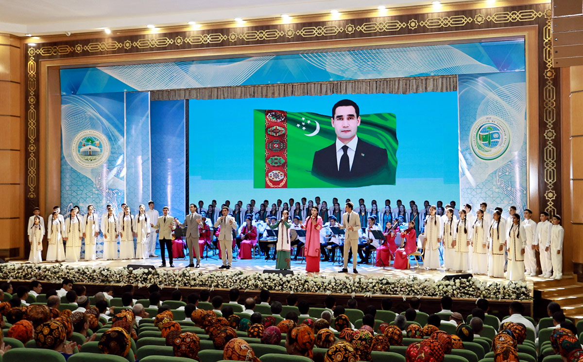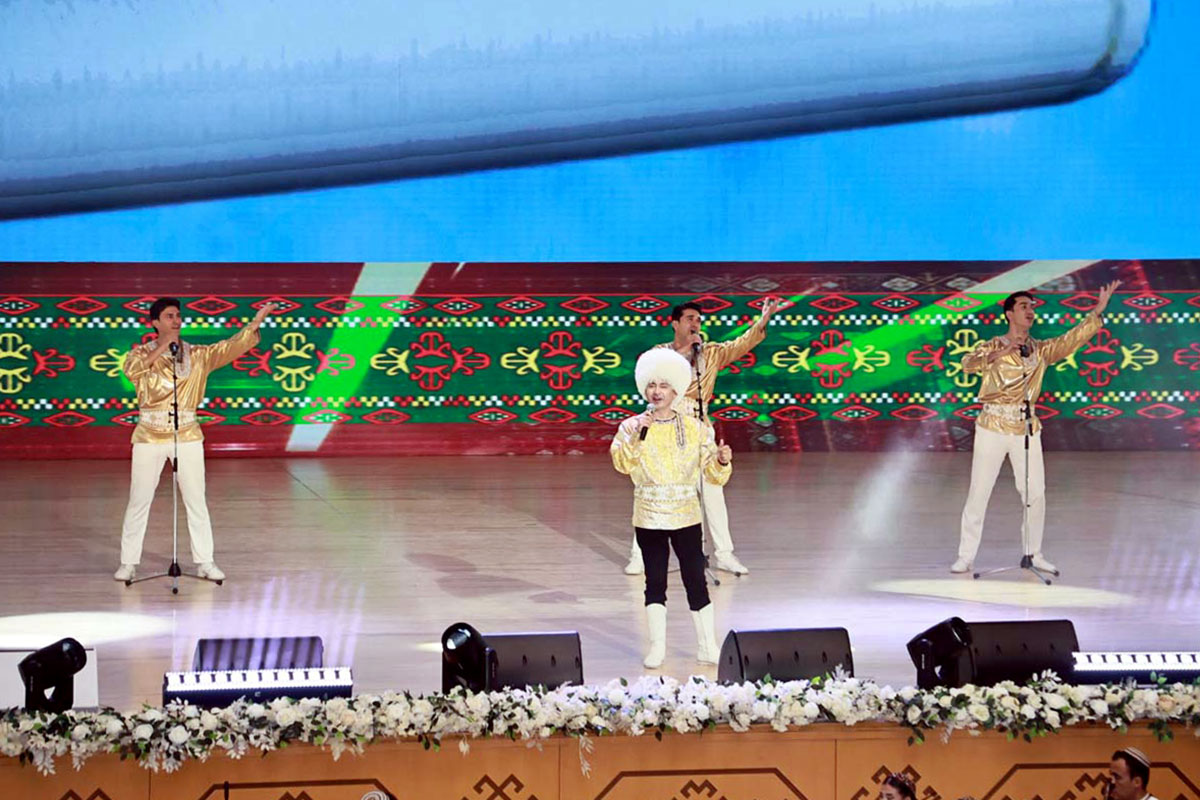 Вот и сегодня под сводами «Türkmeniň ak öýi» состоялся концерт мастеров искусств, молодых исполнителей – победителей различных общенациональных творческих конкурсов, популярных музыкальных ансамблей. Красочные выступления раскрывали богатое наследие туркменского народа, многогранность его творческих талантов. В них воспевалась масштабная деятельность Аркадаглы Героя Сердара, достойно продолжающего благородные начинания Национального Лидера туркменского народа Героя-Аркадага по укреплению мира, дружбы и братства во всём мире.