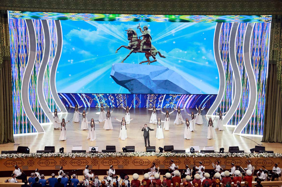 Выступления артистов сопровождались видеокадрами, отражающими основные вехи развития независимого нейтрального Туркменистана.