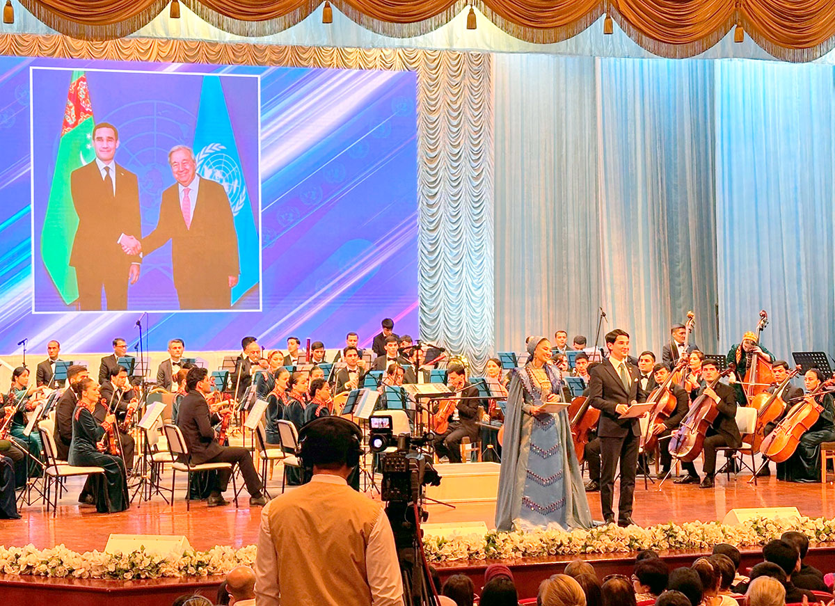 2025-nji ýylda Birleşen Milletler Guramasynyň (BMG) döredilmeginiň 80 ýyllygy bellenilýär. Bu ähmiýetli senäni dabaralandyrmak maksady bilen, Türkmenistanda parahatçylygy, hyzmatdaşlygy we hoşniýetli goňşuçylygy pugtalandyrmaga gönükdirilen çäreleriň toplumy geçirilýär. BMG-niň Türkmenistandaky hemişelik utgaşdyryjysynyň edarasy tarapyndan Türkmenistanyň Medeniýet ministrliginiň goldaw bermeginde guralan «Umydyň we parahatçylygyň sazy» atly baýramçylyk konserti boldy.