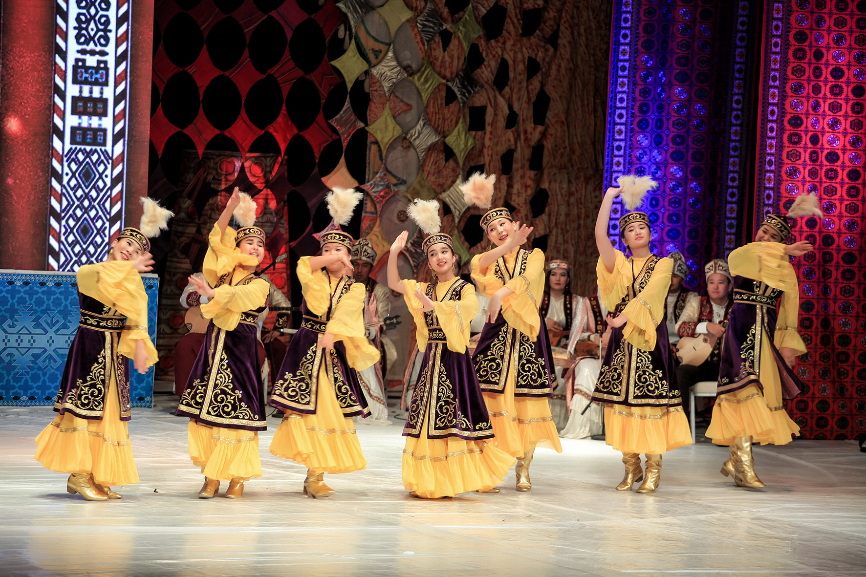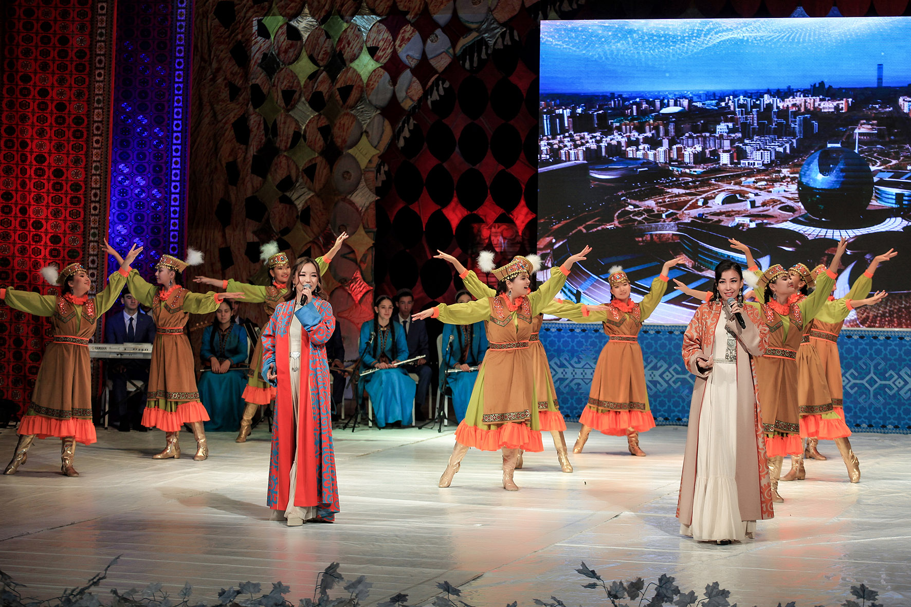 Soňra türkmen we gazak sungat ussatlarynyň aýdym-sazly çykyşlary ýaýbaňlandy. Joşgunly çykyşlarda iki halkyň mizemez dostlugynyň, barha ösýän türkmen-gazak hyzmatdaşlygynyň, şeýle-de parahatçylygyň waspy belentden ýetirildi.