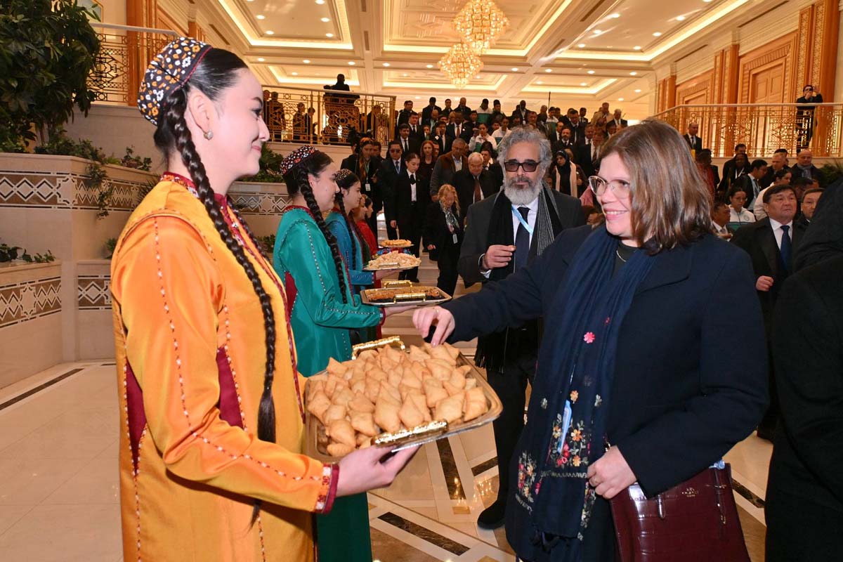 Sergini synlamak maksatly dabaranyň başynda onuň resmi açylyşy hökmünde Türkmenistanyň hemişelik Bitaraplygynyň şanly 30 ýyllygyna bagyşlanan sergä gatnaşyjylara hormatly Prezidentimiz Serdar Berdimuhamedowyň iberen Gutlagy okaldy.
