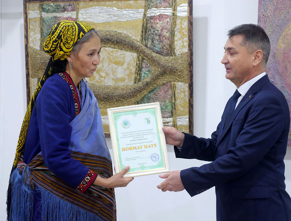 Suratkeşiň sergisini gyzy Çeper Durdyýewa gurady. Ol – haly we gobelen suratkeşi.