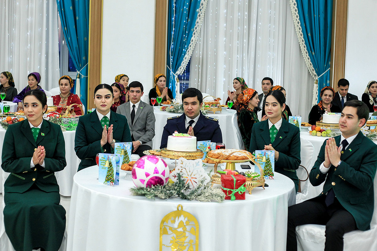 Çäksiz söýgä, bimöçber buýsanja eýe bolan dabarada baýramçylyk gutlaglaryna uly orun berildi. Olaryň dowamynda türkmen halkynyň Milli Lideri Gahryman Arkadagymyzyň hem-de hormatly Prezidentimiz Arkadagly Gahryman Serdarymyzyň ýadawsyz tagallalary netijesinde Halkara parahatçylyk we ynanyşmak ýylynda ýetilen belent sepgitler, gazanylan nusgalyk üstünlikler hakynda uly buýsanç bilen aýratyn durlup geçildi. Şeýle-de hemişelik Bitaraplygymyzyň şöhratly 30 ýyllyk baýramynyň bütin dünýä ýaň salan şanly wakalarynyň galdyran ýakymly täsirleri, Diýarymyzda şatlyk-şowhun bilen garşylanýan Täze ýyl baýramynyň şatlygy dogrusynda ýürek buýsançlaryny beýan etdiler.