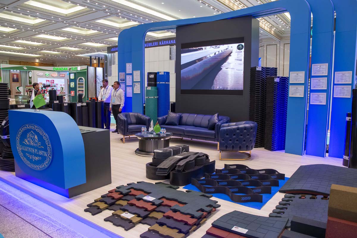Ýurdumyzda durmuşa geçirilýän iri gurluşyk taslamalaryny ýokary hilli gurluşyk serişdeleri bilen üpjün etmekde Türkmenistanyň Senagatçylar we telekeçiler birleşmesiniň agzalaryna möhüm orun degişlidir. Milli ykdysadyýetimizi depginli ösdürmekde mynasyp paýy bolan telekeçiler önümçilikleri giňeltmek bilen, gurluşyk senagatynyň ösüşine uly goşant goşýarlar. Gözden geçirilişde “Galkynyş plastik” hususy kärhanasy plastmassa turbalaryň, ylgaw meýdançalary, ýanýodalar üçin niýetlenen rezin örtgüleriň, ýol gurluşygynda topragy berkitmek üçin ulanylýan plastmassa serişdeleriniň dürli görnüşlerini hödürleýär. “Döwlet gurluşyk” hojalyk jemgyýeti gurluşyk taslamalaryny durmuşa geçirmek bilen bir hatarda, bazalt daşyndan süýüm önümçiligini ýola goýupdyr. Bu gurluşyk serişdesi desgalary durnukly temperaturada saklamak we ses geçirmezlik üçin örtgüleri taýýarlamakda gymmatly çig mal bolup durýar. “Erjel-Begenç” hususy kärhanasynyň öndürýän emeli mermer we granit önümleri berkligi, görnüşi babatda giň mümkinçilikleri hödürleýär. “Döwletli Döwran” hojalyk jemgyýeti hem bu ýere gelýänleri keramiki plitalaryň, üçekleriň, gurluşyk we bezeg kerpijiniň dürli görnüşleri bilen tanyşdyrýar.