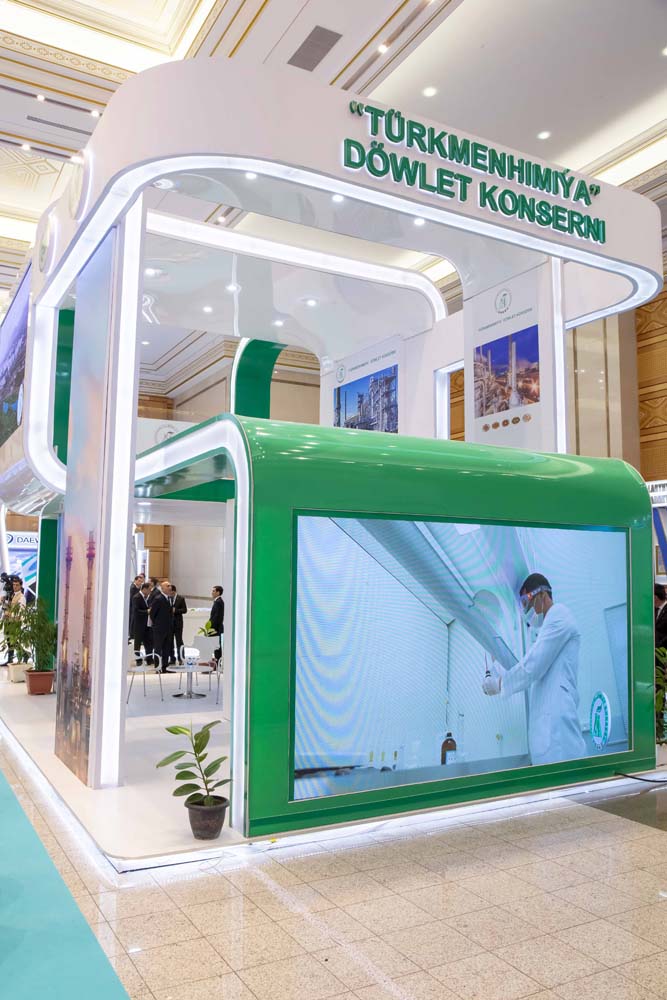 Soňra gatnaşyjylar köpugurly sergide görkezilýän diwarlyklar bilen tanyşmaga başladylar. Oňa ýurdumyzyň döwlet we hususy edara-kärhanalarynyň, daşary ýurt kompaniýalarynyň 150-den gowragy öz öndürýän önümleri, hödürleýän hyzmatlary bilen gatnaşýar. Aşgabat şäher häkimliginiň sergi diwarlygynda şäher gurluşygynda döwrebap tehnologiýalaryň we nusgawy usullaryň sazlaşykly peýdalanylýandygy beýan edilýär. Uly ekranda ak mermerli paýtagtymyzyň durmuş we ykdysady ulgamlarda ýeten derejesi görkezilýär. Owadan görnüşde ýerleşdirilen köp sanly güller, bezeg agaçlary ýurdumyzyň baş şäherinde ekologik abadançylyga möhüm üns berilýändigini alamatlandyrýar. Bu ýerde Aşgabadyň keşbini emele getirýän ajaýyp binalaryň şekil nusgalaryna-da aýratyn orun berlipdir. Ýurdumyzyň döwlet berkararlygyny, hemişelik Bitaraplygyny, dost-doganlygy we abadançylygy alamatlandyrýan binalar şolaryň arasynda has-da tapawutlanýar.