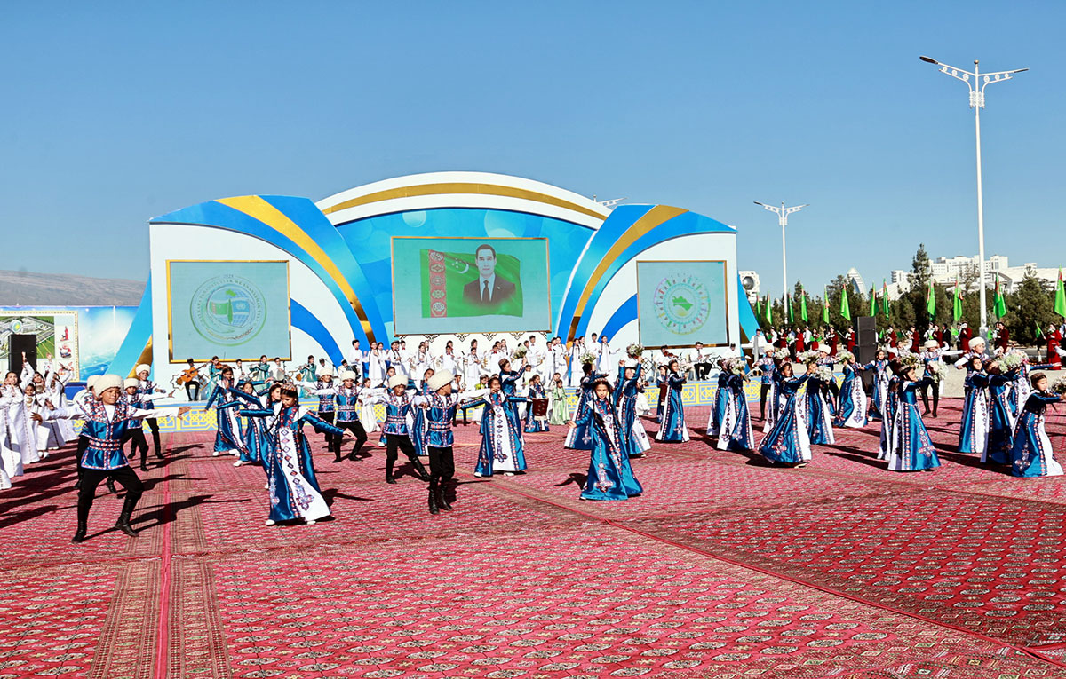 Medeniýet we sungat ussatlarynyň, çagalar tans toparlarynyň ýerine ýetiren çykyşlary dabara aýratyn baýramçylyk öwüşginini çaýdy.