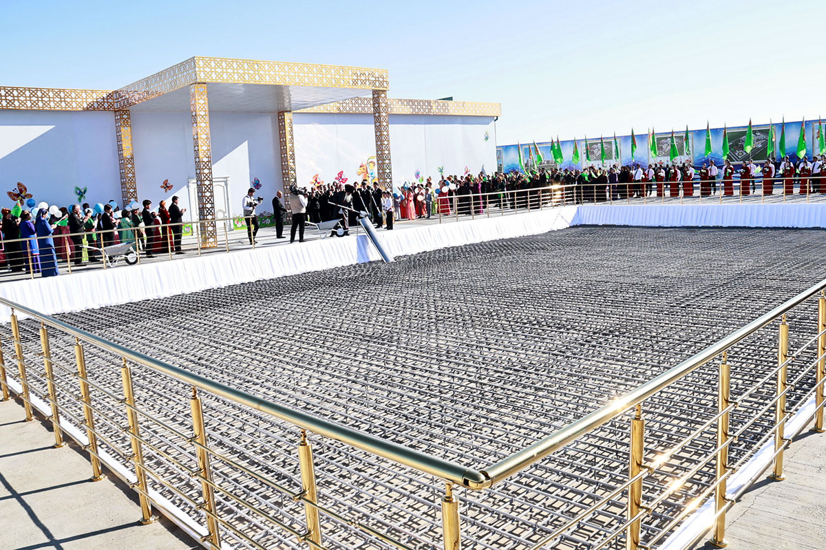 Soňra dabara gatnaşyjylar täze merkeziň düýbüne ilkinji beton garyndysyny guýdular. Ilki bilen, ýaşuly nesliň wekilleri täze merkeziň binýadyna ilkinji beton garyndysyny atýarlar. Soňra bolsa ýetginjek ýaşlar we çagalar hormatly ýaşulularyň göreldesine eýerip, beton garyndylaryny atdylar. Munuň özi merdana pederlerimiziň asyrlar aşyp gelýän asylly ýörelgeleriniň dowamata atarylýandygynyň aýdyň nyşany boldy. Şol pursat dürli reňkdäki şarlar asmana uçuryldy.