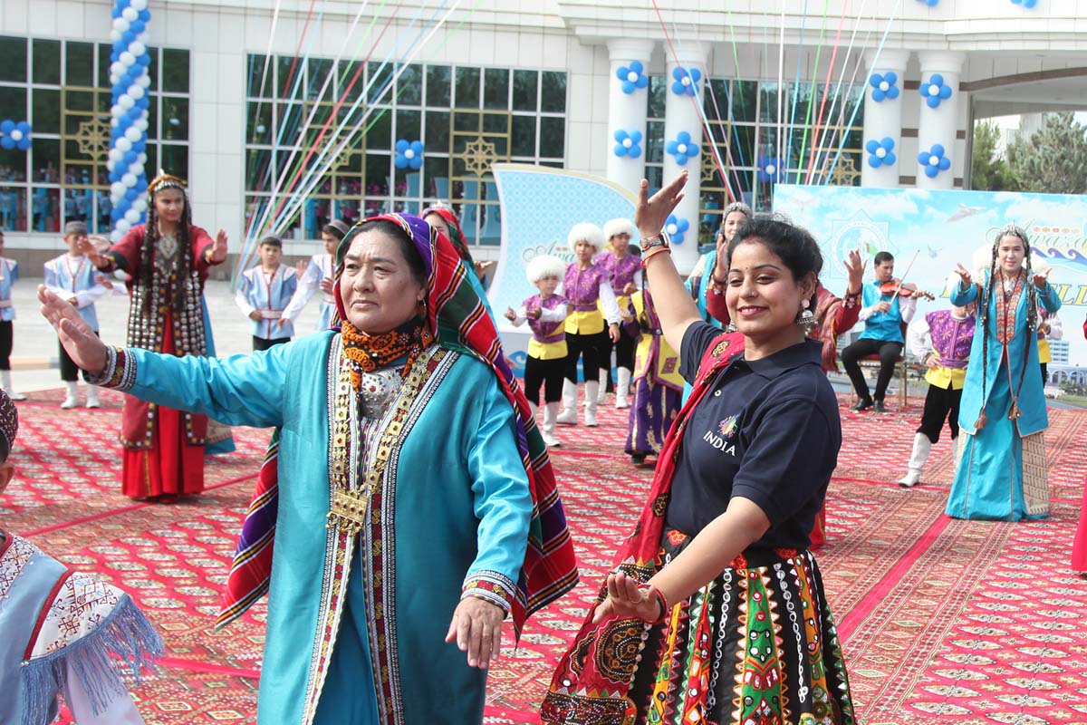 Soňra akwaparkyň sahnasynda bilelikdäki konsert geçirildi. Tomaşaçylar dünýäniň dürli ýurtlaryndan gelen tans toparlaryny mähirli garşy aldylar. Olaryň käbirleri ýurdumyzda geçirilen halkara medeni çärelere ençeme gezek gatnaşdylar. Sahnada dürli halklaryň saz sungatynyň köpöwüşginliligi öz beýanyny tapdy, milli aýdymlar ýerine ýetirildi we gadymdan gelýän däpleriň özboluşlylygy şöhlelendirildi.