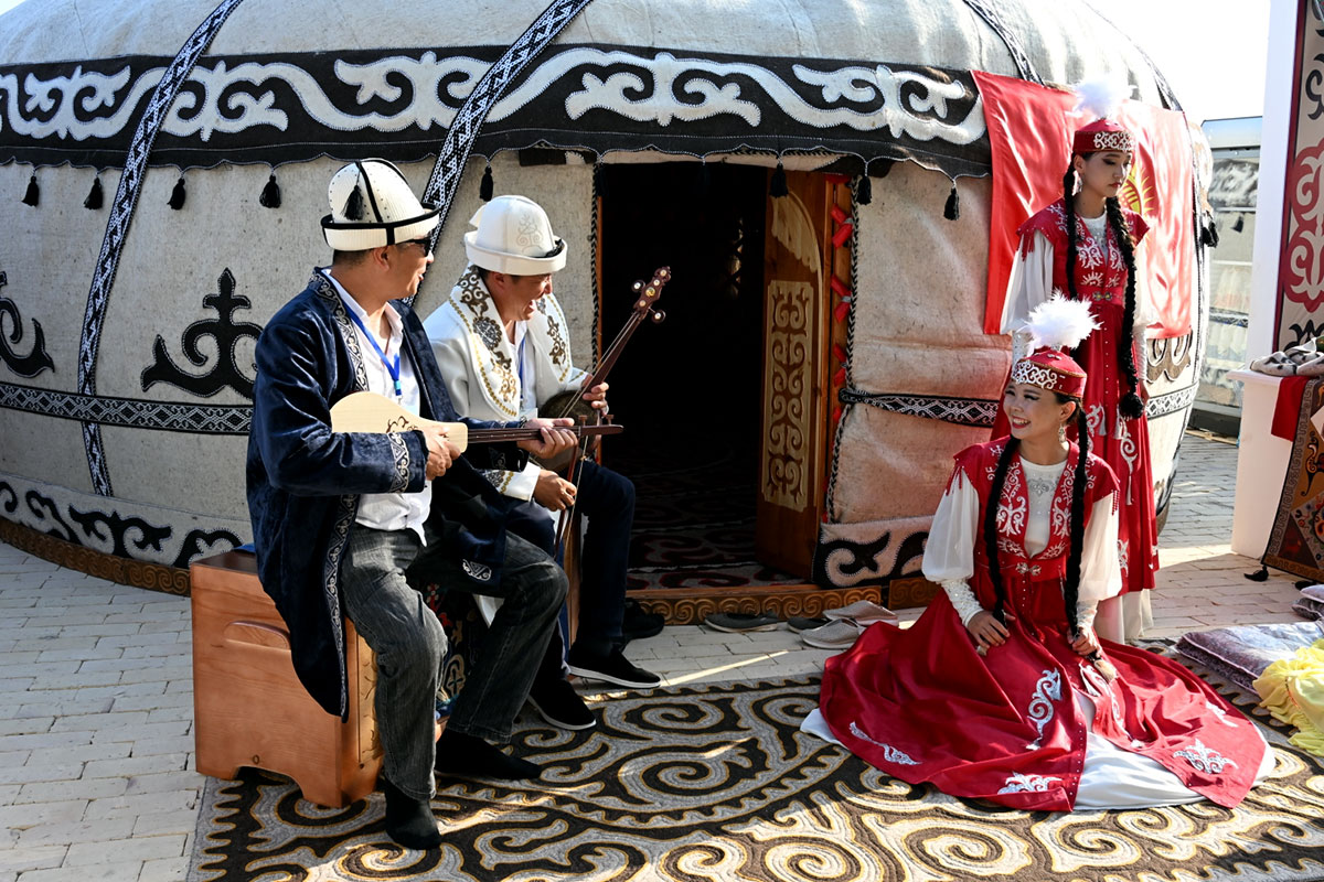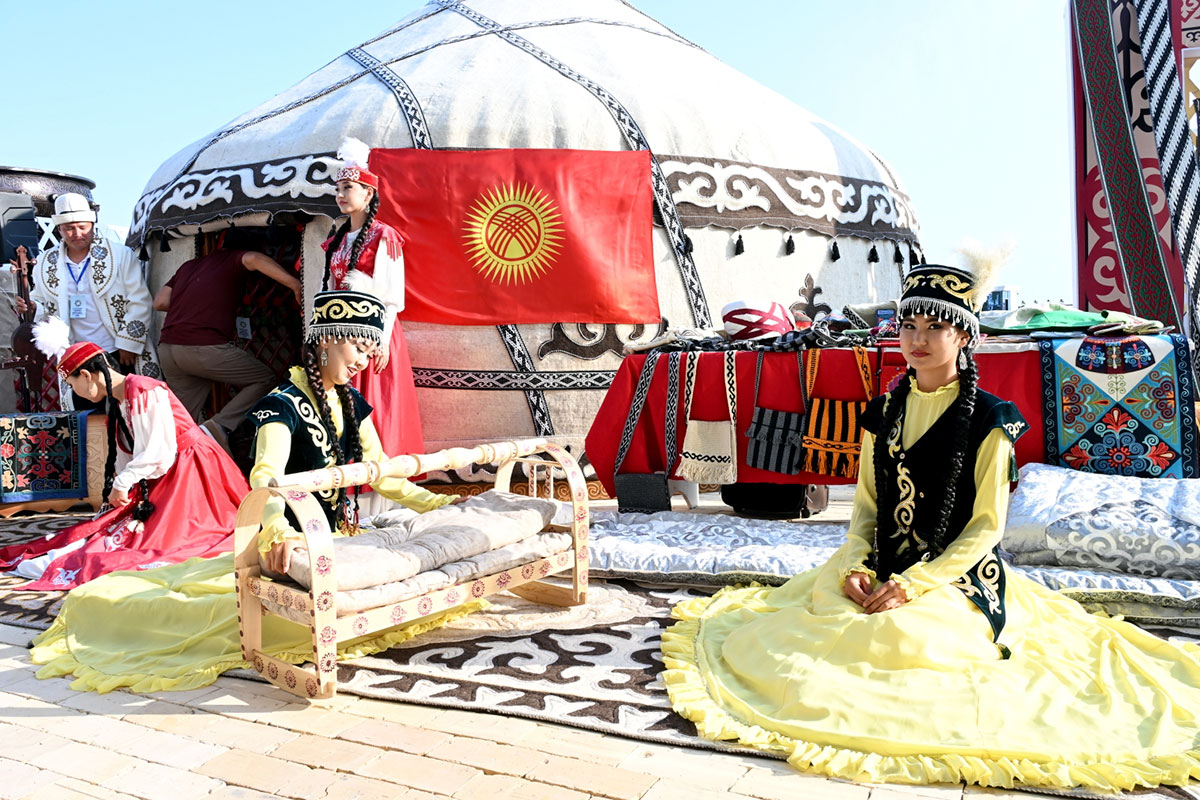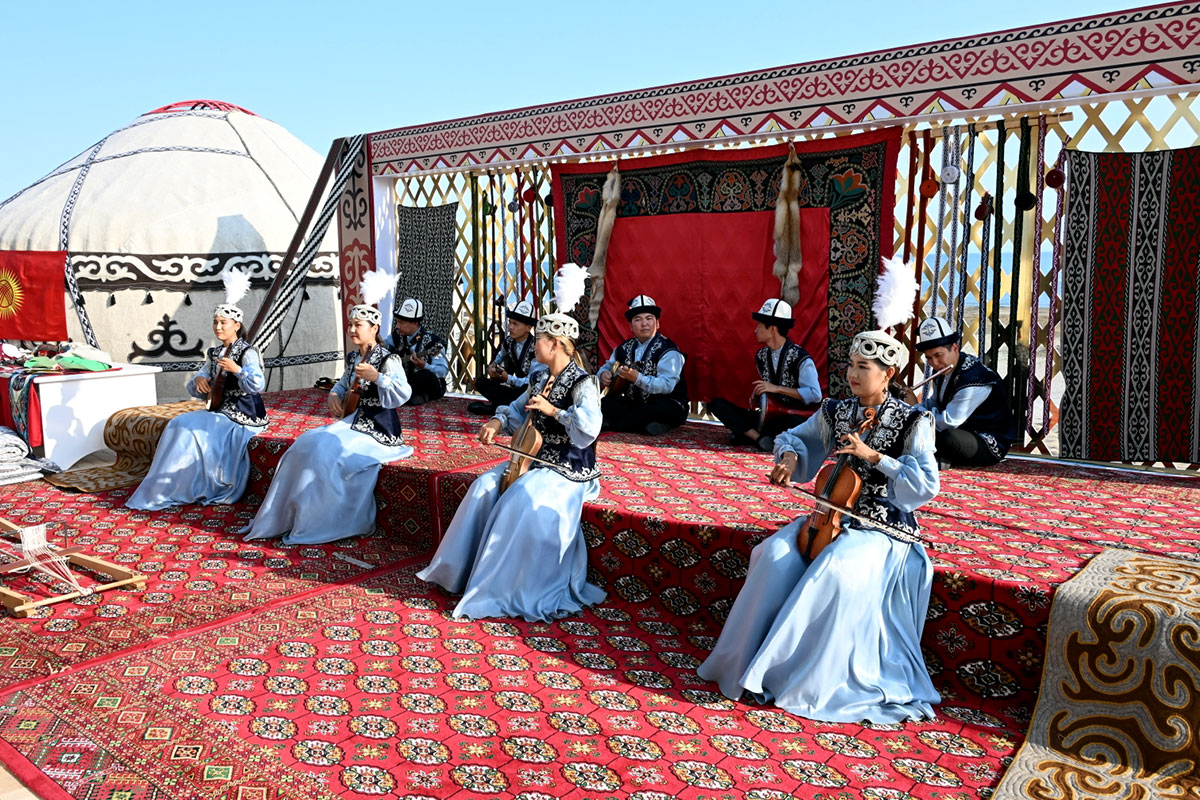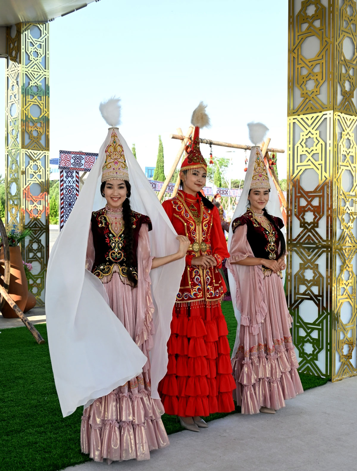 Soňra türkmen halkyna mahsus myhmansöýerlik däplerine eýerilip, Gahryman Arkadagymyz we wekiliýet ýolbaşçylary Türkmenistanyň sergi meýdançasynda dikilen ýörite ak öýe, saçak başyna çagyryldy. Bu ýerde ýokary derejeli myhmanlara türkmen milli tagamlary hödür edildi.