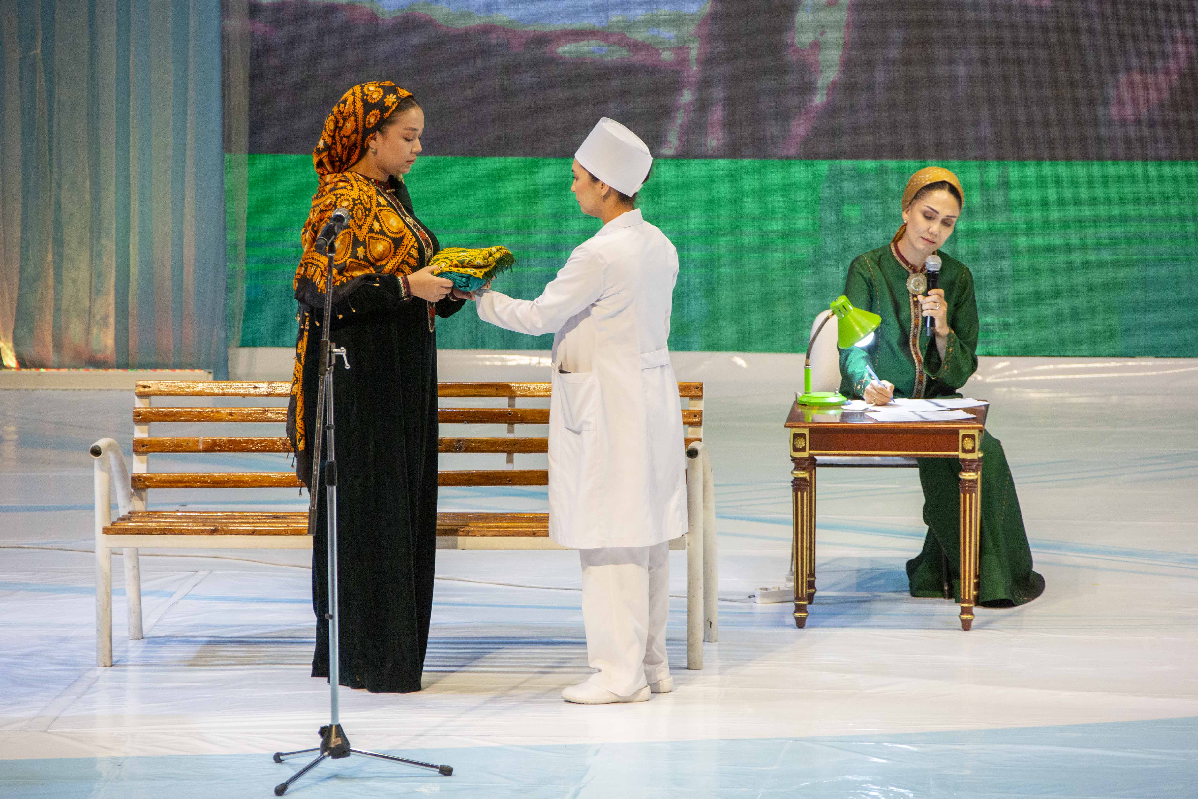 Soňra dabaranyň esasy pursatlary başlanyp, ilki bilen, türkmen halkynyň Milli Lideri, Türkmenistanyň Halk Maslahatynyň Başlygy Gahryman Arkadagymyzyň Türkmenistanyň Gahrymany Amangözel Şagulyýewanyň doglan güni mynasybetli iberen Gutlagy okaldy.