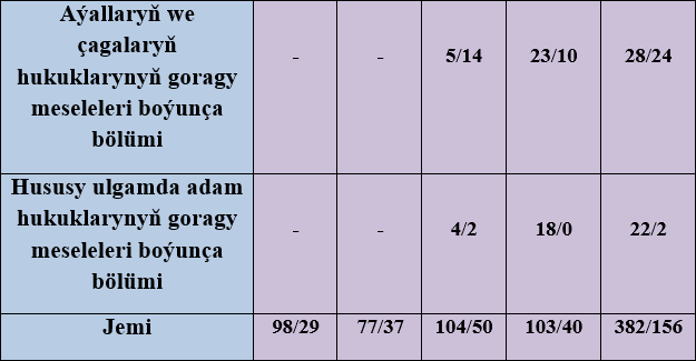 Ýurdumyzda adamlaryň we raýatlaryň raýat we syýasy, ykdysady, durmuş we medeni hukuklarynyň we azatlyklarynyň üpjün edilişi, şeýle-de Adalatçynyň Diwanyna ýüz tutmalar bilen bagly amala aşyrylan işler şu Maglumatyň degişli baplarynda giňişleýin beýan edildi.
