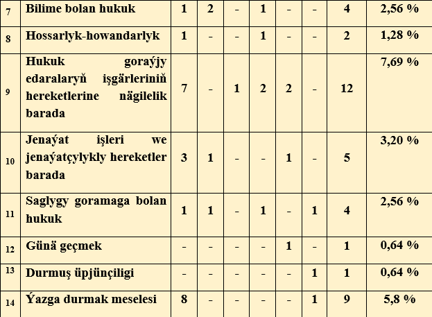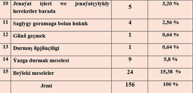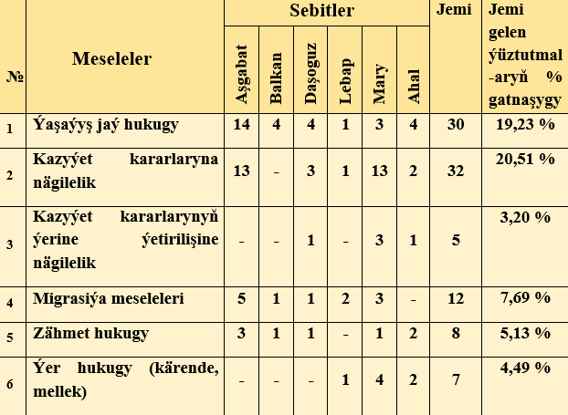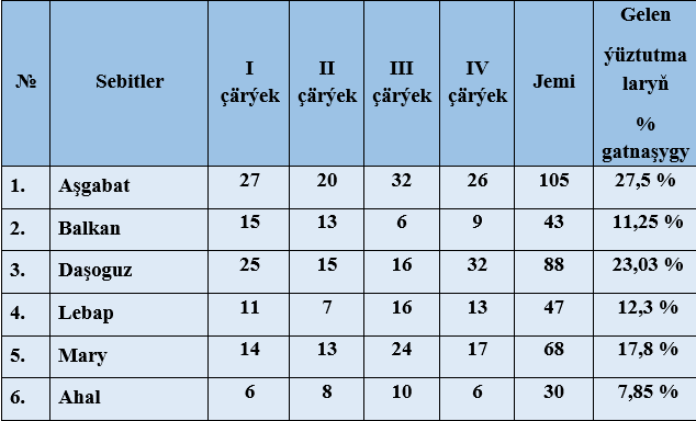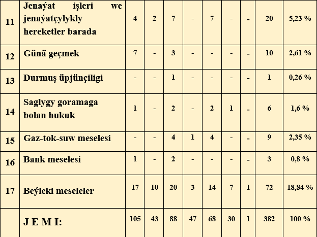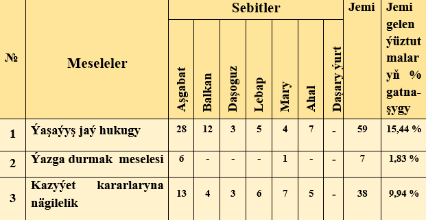 Raýatlaryň ýüztutmalary boýunça seljerme.