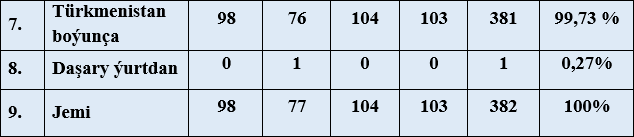 Ýurdumyzda ýokary bilimli hünärmenleri taýýarlamaga, iň täze kompýuter, multimedia tehnologiýalaryndan, öňdebaryjy iş tejribelerinden peýdalanýan döwrebap okuw mekdepleriniň giň toruny döretmäge, netijede, bilim ulgamyny täzeçil ösdürmäge aýratyn ähmiýet berilýär. Geçen ýyl ýokary, orta hünär okuw mekdeplerine kabul edilen talyplaryň sanynyň artdyrylmagy, olarda täze hünärleriň açylmagy, hünär bilimleriniň ugurlarynyň giňeldilmegi bu babatda alnyp barylýan anyk işleriň mysaly bolup durýar. Ýagny 2023-2024-nji okuw ýylynda ýokary okuw mekdeplerine 16017 (şol sanda 7399 gyzlar), orta hünär okuw mekdeplerine 10820 (şol sanda 7394 gyzlar) talyplar kabul edilen bolsa, 2024-2025-nji okuw ýylynda ýokary okuw mekdeplerine 16080 (şol sanda 7758 gyzlar), orta hünär okuw mekdeplerine 10303 (şol sanda 7335 gyzlar) talyplar kabul edildi.