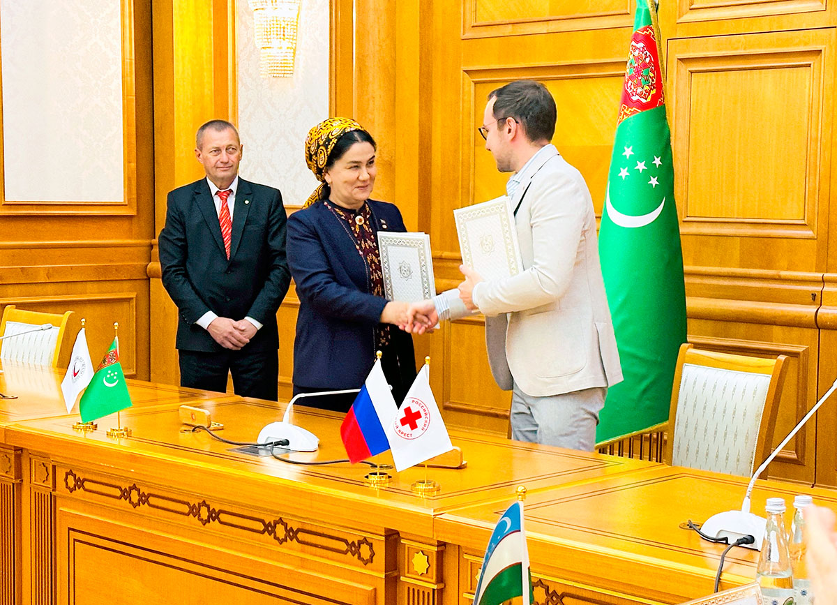 Russiýanyň Gyzyl Haç guramasynyň (RGHG) başlygy Pawel Sawçugyň belleýşi ýaly, Türkmenistanyň Milli Gyzyl Ýarymaý Milli jemgyýeti bilen Russiýanyň Gyzyl Haç guramasynyň arasynda gol çekilen Ähtnama ikitaraplaýyn hyzmatdaşlygyň ösmegine goşmaça itergi boldy. Ol Russiýanyň adatdan daşary ýagdaýlarda toplan tejribesiniň türkmen kärdeşleri üçin peýdaly bolup biljekdigini nygtady. Aýratyn bir duşuşykda sebit şahamçalarynyň ýolbaşçylary RGHG tarapyndan döredilen göçme jaýlara we çadyrlara uly gyzyklanma bildirdiler.