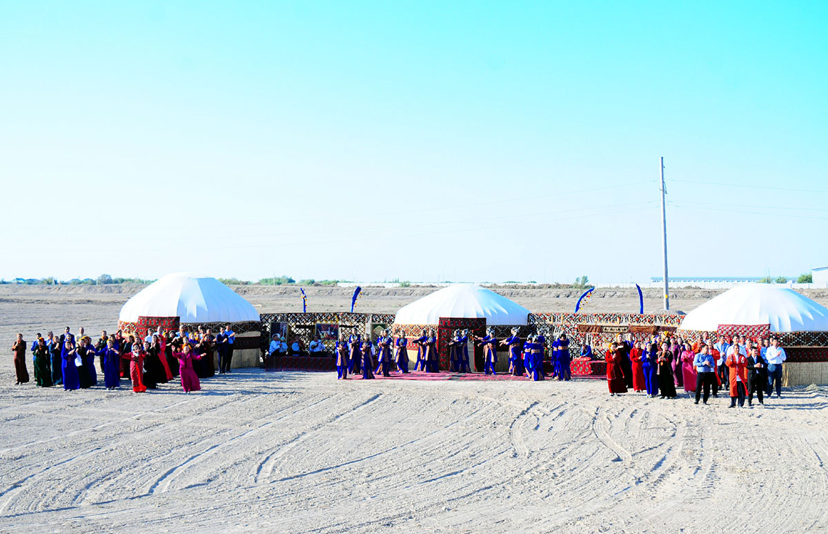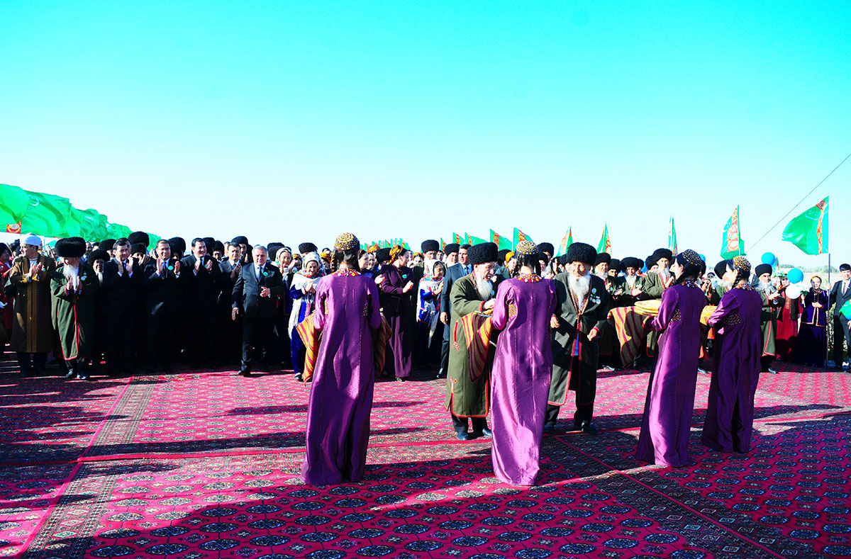 Halkymyzda ýol, köpri gurmak, bina galdyrmak sogap iş hasaplanýar. Gahryman Arkadagymyzyň we Arkadagly Gahryman Serdarymyzyň yzygiderli tagallalary esasynda şeýle asylly işler häzirki döwürde ýurdumyzyň ähli sebitlerinde giňden ýaýbaňlandyrylýar. Munuň özi halkymyzyň bagtyýar durmuşynyň üpjün edilmegi ugrunda edilýän tagallalaryň aýdyň netijesidir. Şäherçä barýan ýoluň ugrunda türkmen toýuna mahsus milli däp-dessurlar ýerine ýetirildi. Berkarar döwletiň täze eýýamynyň Galkynyşy döwründe milli däp-dessurlarymyz täze röwşe eýe bolup, häzirki zaman ýörelgeleri bilen baýlaşdyrylýar. Şunda köpöwüşginli toý dessurlaryna aýratyn orun berilýär.