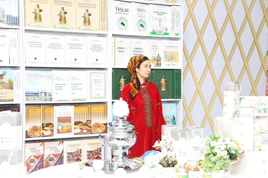 Şeýle hem sergide milli senetçileriň, şol sanda türkmen zenanlarynyň zehininden dörän dürli önümler, amaly-haşam sungatynyň eserleri, kümüş şaý-sepler görkezildi. Gelin-gyzlarymyzyň on barmagynyň hünärinden kemala gelýän halylardyr keşdeler hemmeleriň ünsüni özüne çekdi. Şanly senelerdir dabaralaryň çäklerinde giň möçberli sergileriň guralmagy halkymyzyň ruhy-ahlak gymmatlyklaryny wagyz etmegiň netijeli ýoly bolup durýar.