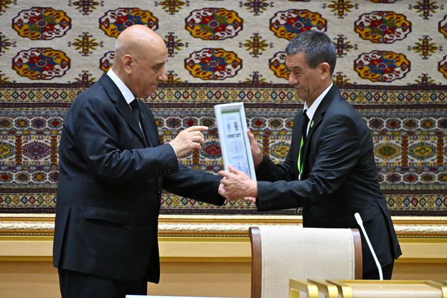Çykyşlarda bellenilişi ýaly, ikinji tapgyrynyň gurluşygy ýokary derejede dowam edýän, «akylly» şäher konsepsiýasy esasynda bina edilen Arkadag şäherinde Gahryman Arkadagymyzyň we Arkadagly Gahryman Serdarymyzyň tagallalary netijesinde ýurdumyzyň ösüşine, halkymyzyň bagtyýar durmuşynyň üpjün edilmegine gönükdirilýän beýik işler ýokary derejede amal bolýar. Şu ýyl Türkmenistanyň hemişelik Bitaraplygyna 30 ýyl, Birleşen Milletler Guramasynyň esaslandyrylmagyna bolsa 80 ýyl dolýar. Hemişelik Bitaraplyk hukuk derejesi Birleşen Milletler Guramasynyň Baş Assambleýasynyň degişli Kararnamalary bilen üç gezek ykrar edilen döwletimiz geçen döwrüň dowamynda Milletler Bileleşiginiň ygtybarly we strategik hyzmatdaşlarynyň birine öwrüldi. Türkmenistanyň başlangyjy esasynda BMG-niň Baş Assambleýasy tarapyndan kabul edilen «2025-nji ýyl — Halkara parahatçylyk we ynanyşmak ýyly» atly Kararnama bolsa Watanymyzyň halkara giňişlikdäki abraýynyň barha belende galýandygyny görkezýär.