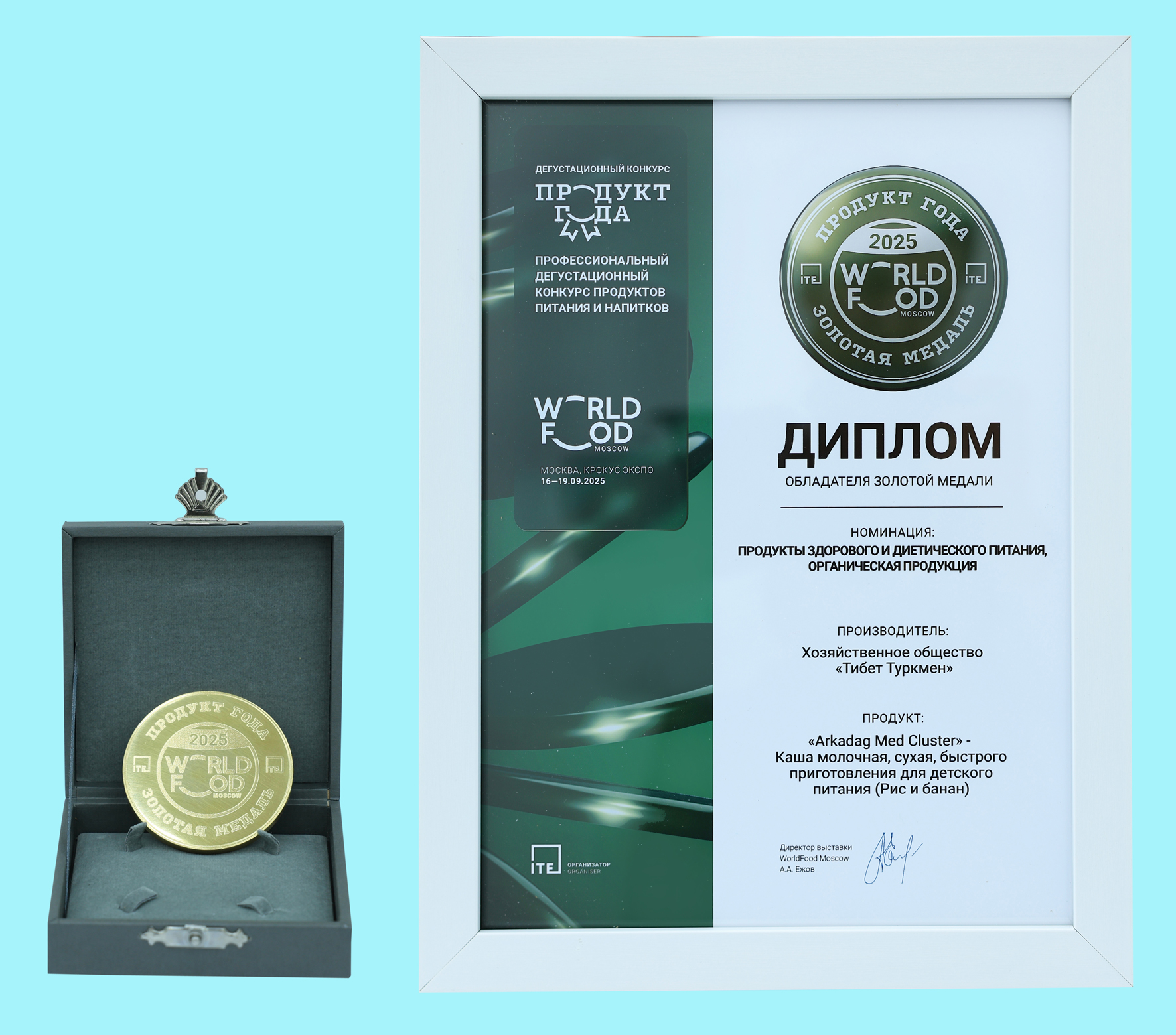 Ilkinji nobatda, Gahryman Arkadagymyza şäheriň “Arkadag Medisina Klasteri Menejment” kärhanasynyň önümleriniň we çaga iýmitleriniň şu ýylyň sentýabrynda Moskwada geçirilen gözden geçirilişde “Ýylyň önümi” atly altyn medala we degişli diploma mynasyp bolandygy baradaky hoş habar aýdyldy. Munuň özi, ýurdumyzyň dürli künjeklerinde bolşy ýaly, Arkadag şäherinde-de durmuş maksatly, aýratyn-da, sagdyn iýmitlenmek wezipelerini üstünlikli amala aşyrýan önümçilik toplumlarynyň ekologik taýdan arassa önümleriniň halkara derejede ykrar edilýändiginiň aýdyň beýanydyr.