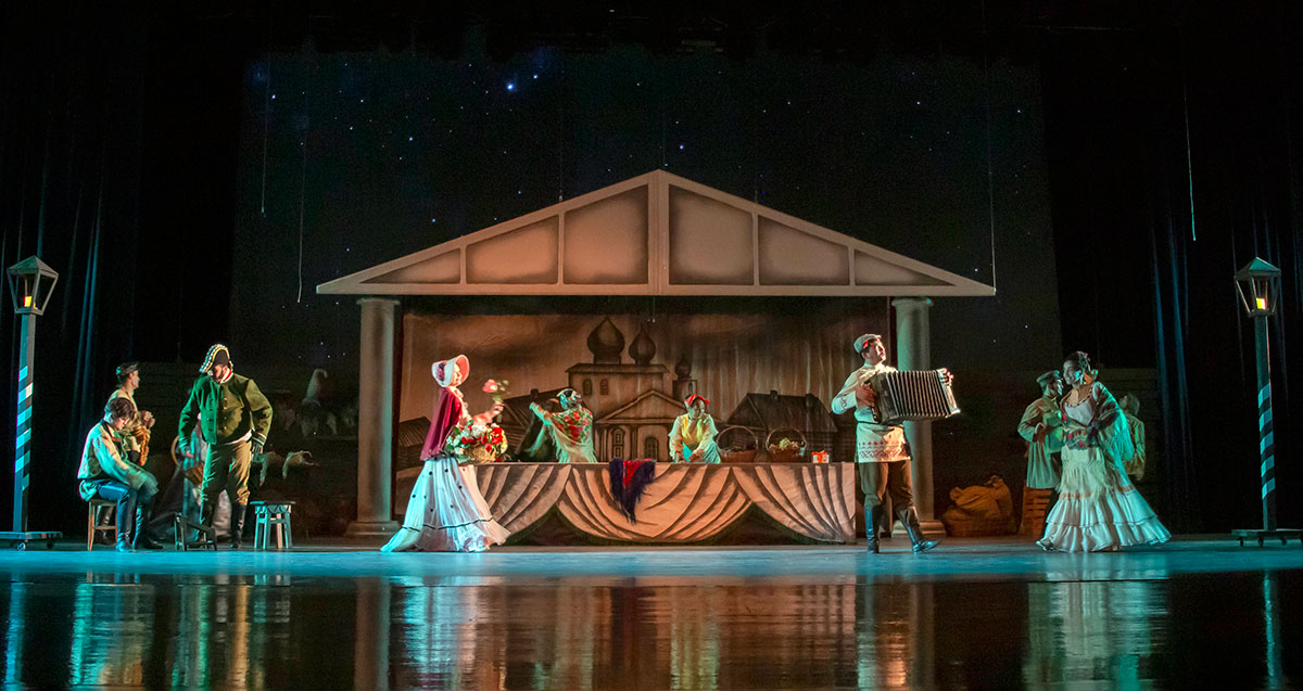 The production has many strengths. First and foremost — the ensemble cast. With their dances and songs, the chorus elevated the play to the level of a vaudeville. And when the romance “In the Moonlight the Snow Shimmers” was performed in the Turkmen language, the audience broke into enthusiastic applause. The market scene greatly adorned the production — cheerful, sunny, and musical.