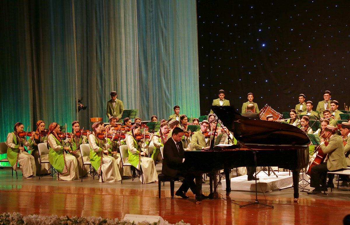 A brilliant performance was delivered by Ashyr Ashyrov, laureate of the “Türkmeniň Altyn asyry” award, who performed the third movement of the Concerto for Piano and Orchestra. The audience greeted the pianist’s virtuosity with prolonged applause.