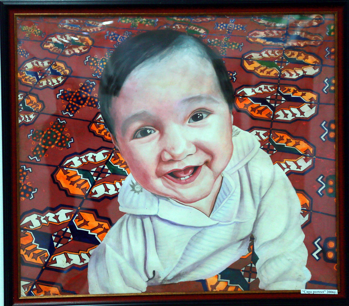 In addition to carpets and tapestries, the exhibition features a gallery of portraits created by Sheker Shayarovna during her years of study and professional work. Nearly all visitors were charmed by the portrait of a little boy with a radiant smile. The portrait of his sister also did not go unnoticed. Unlike her brother, the girl appears serious beyond her years and at the same time extremely inquisitive. The portraits are painted in the style of photorealism.