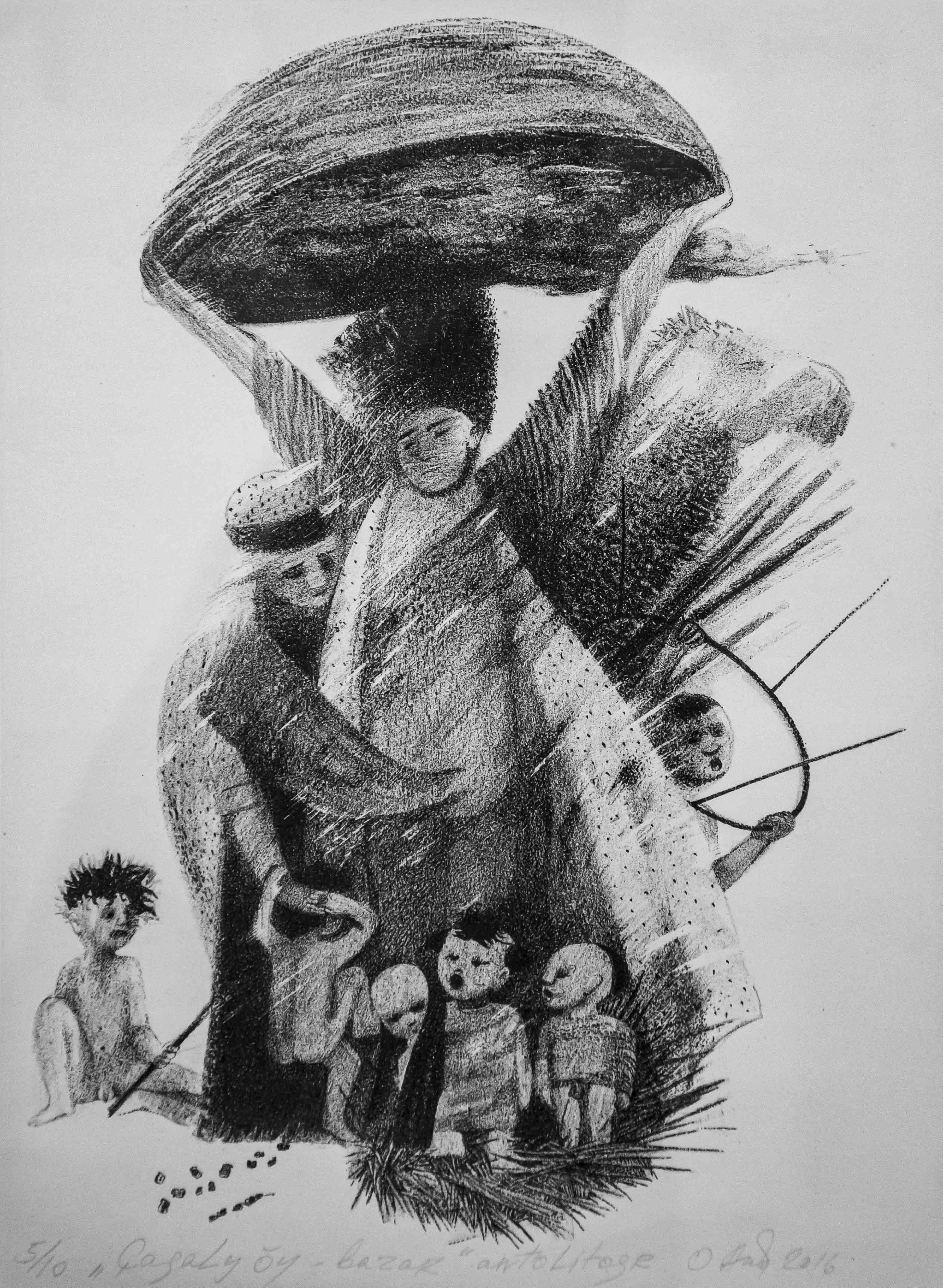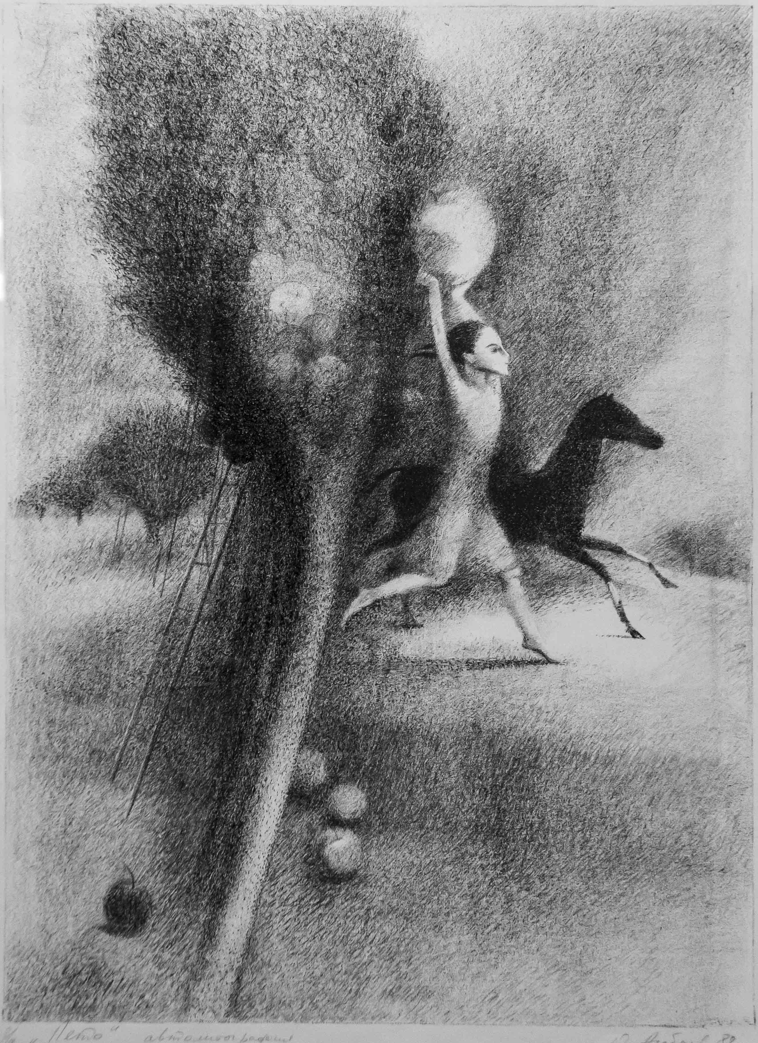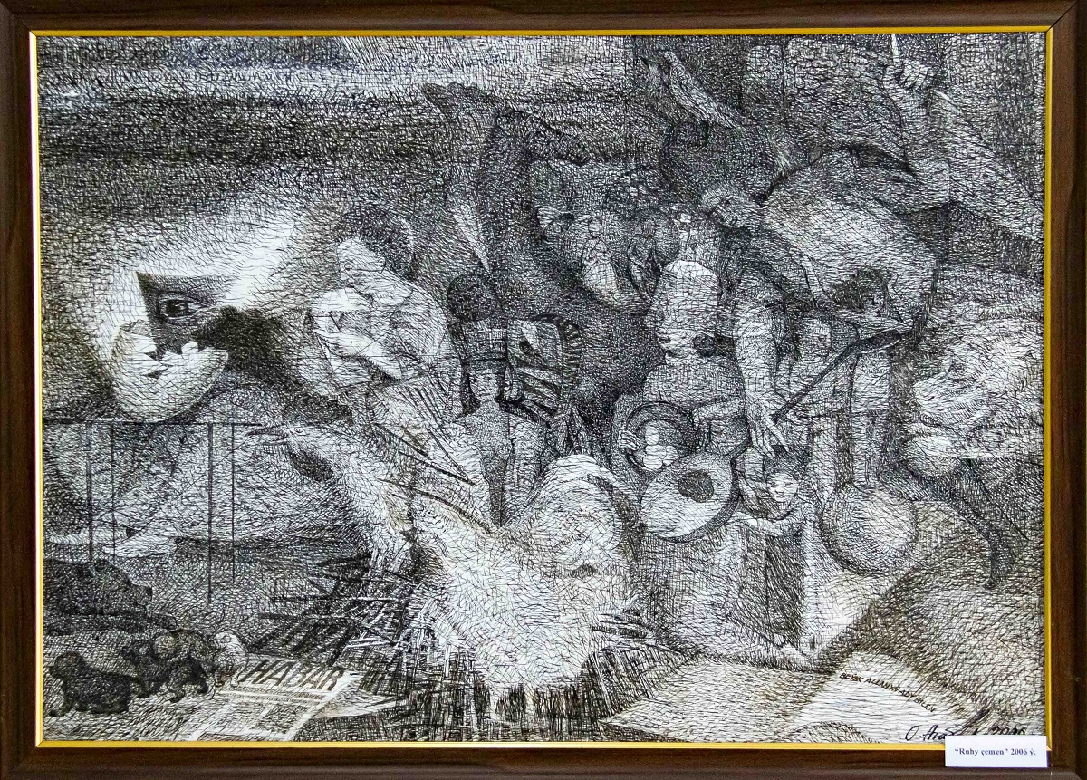 After graduating in 1976 from the Turkmen State Art School, Oraz Agabayev illustrated a children’s book about shepherds. This work so captivated the artist that it became a defining moment in his creative life. Thus, a distinctive graphic artist emerged in the country, whose works differ markedly from those of other painters. Feeling an irresistible attraction to this form of visual art, Agabayev continued his studies at the Faculty of Graphics of the Ukrainian Polygraphic Institute named after Ivan Fedorov. During his studies, he mastered all types of graphic art: drawing, pencil, charcoal, printmaking, xylography, and lithography. He mastered everything related to graphic art. Yet an artist is also a philosopher, with a personal worldview, a broad knowledge base, and the ability to vividly express ideas born in the soul.