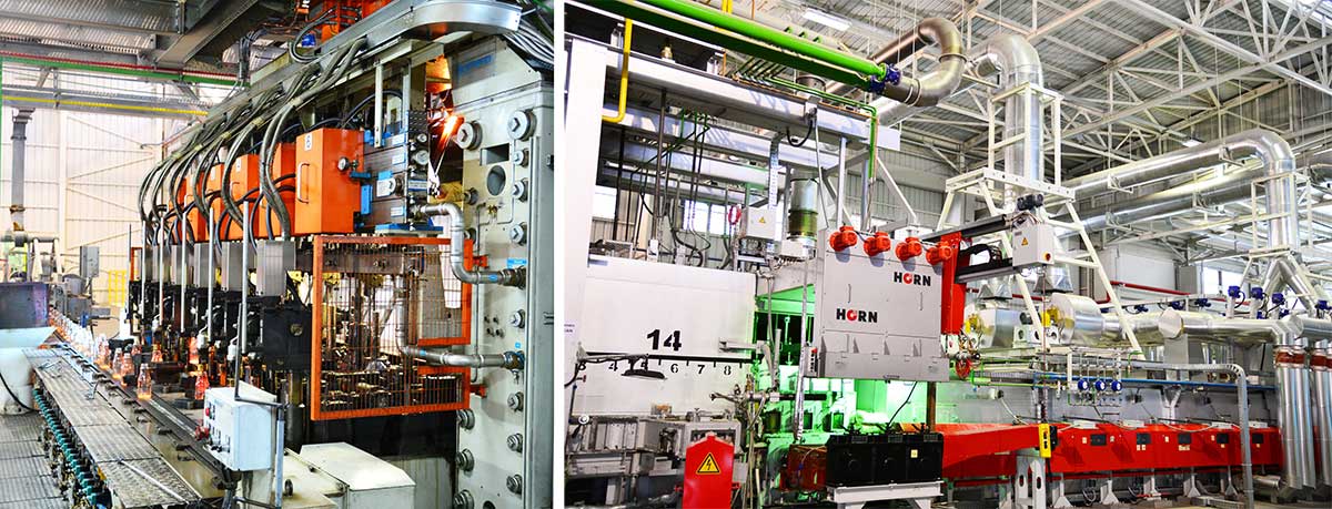 The most robotic workshop at a glass plant is considered to be the glassware production workshop. A recuperative furnace and two glass-forming machines with production lines of different capacities are installed here. This equipment made it possible to produce cans and bottles for drinks, as well as medical bottles and containers with a volume of 0.5 to 3 liters.