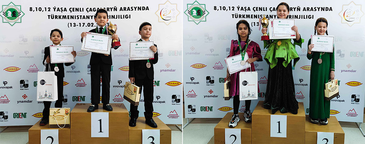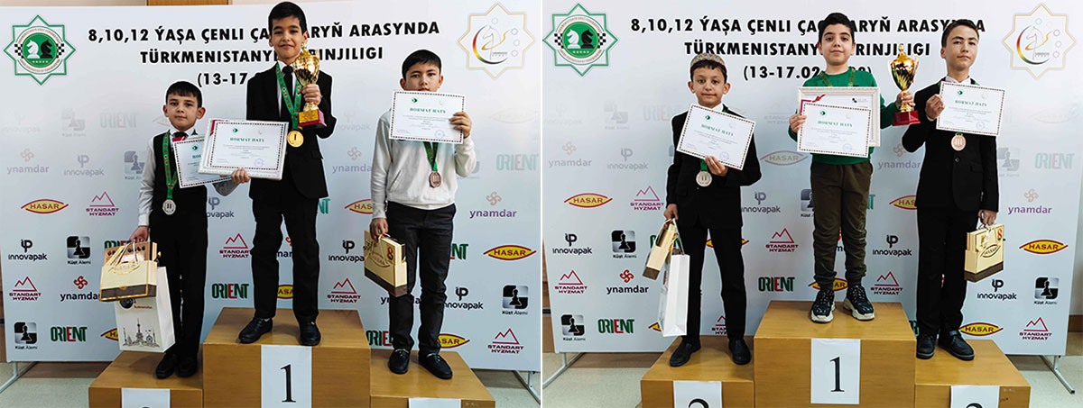 In the largest category of boys under 10, which gathered 83 applicants for awards, the championship with a 100% result - 9 points out of 9 possible - was issued by a schoolboy from Mary, Alyhan Batyrov. Didar Baltayev and Bayhan Jumayev (both from Lebap) were 2 points behind him, taking 2nd and 3rd places respectively.