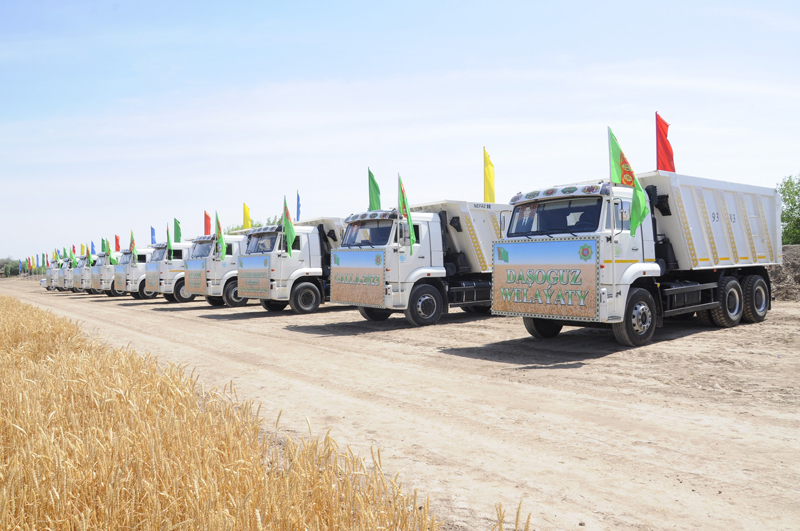 Delivery of wheat to reception points, barns and elevators will be provided by trucks. The laboratories of the Turkmenstandartlary Main State Service are also in full readiness, whose specialists will use the latest equipment to quickly determine the quality of grain coming from the fields.
