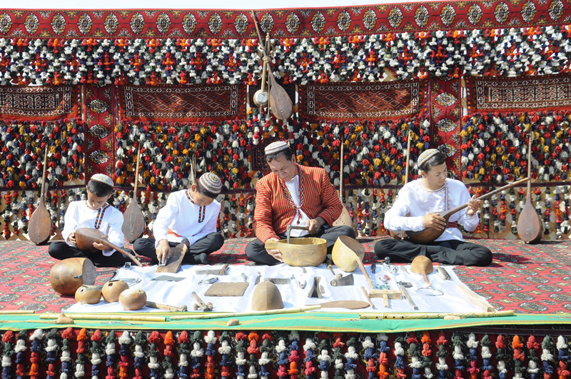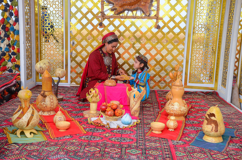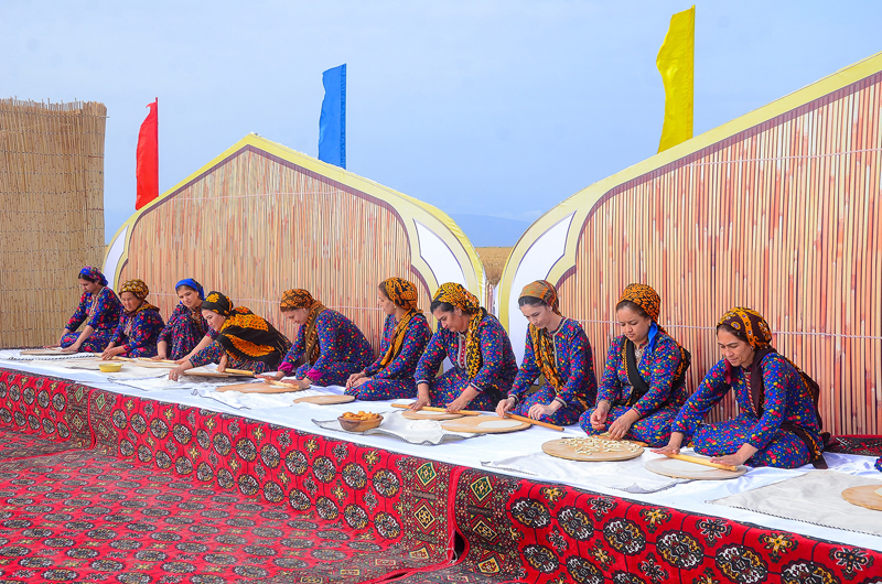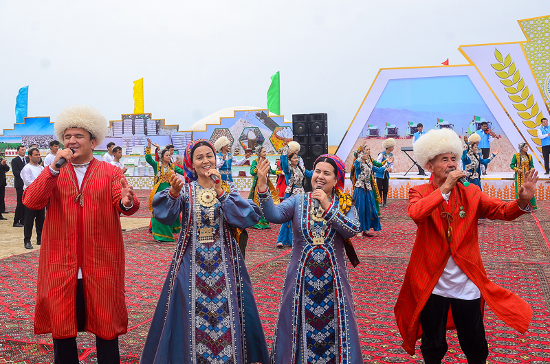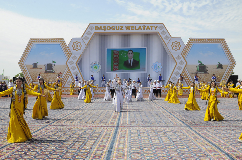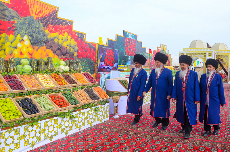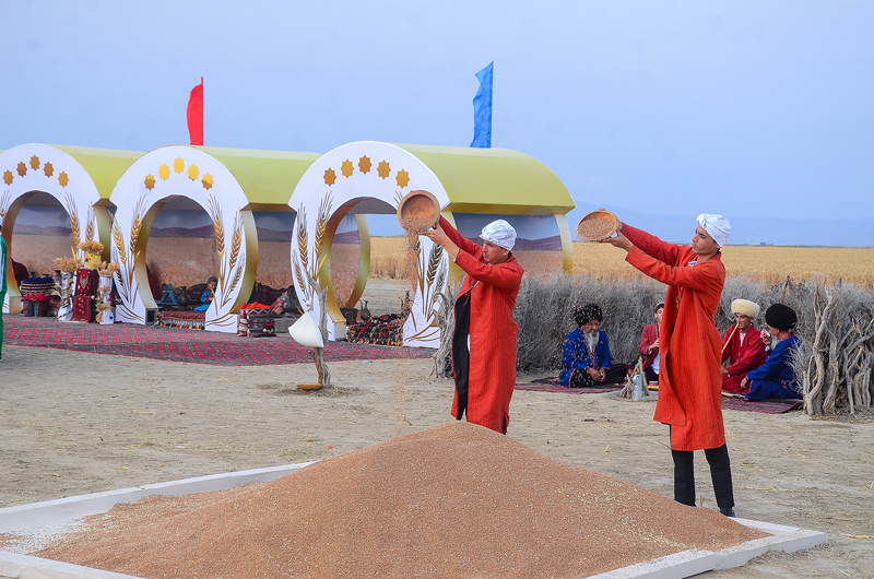 As part of the celebrations on the occasion of sending the first tons of golden grain to the granaries of the Homeland in Dashoguz and Balkan velayats, exhibitions of products of the agro-industrial complex of the country were organized at the edge of wheat fields, samples of modern agricultural machinery were demonstrated. Festive treats were offered to the participants of the celebrations in elegantly decorated national yurts.