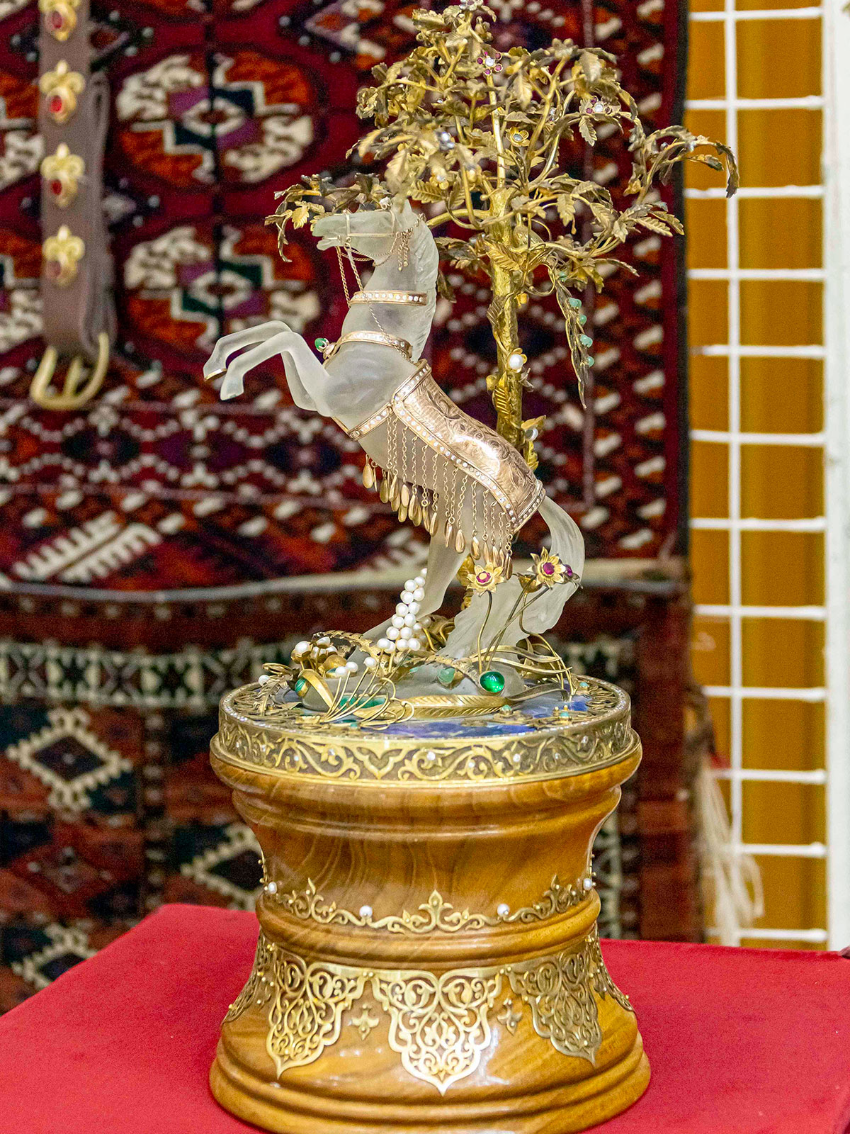 Before the start of the forum, the participants got acquainted with the exhibition of fine and decorative arts dedicated to the Ahal-Teke horses, which was deployed in the foyer. At all times, «paradise» horses have been, and to this day remain true friends and companions of our people, a source of his creative inspiration. This was vividly embodied in the thematic works presented in the exposition.