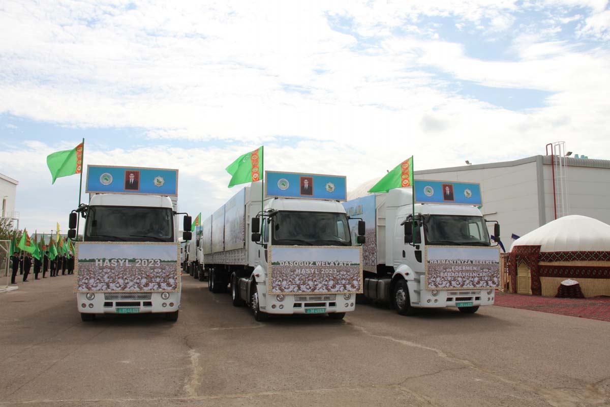 Today, the first caravan of cars and tractors with trailers decorated with State flags and banners, loaded to the top with “white gold”, arrived at the reception points and cotton gin enterprises of the Dashoguz region.