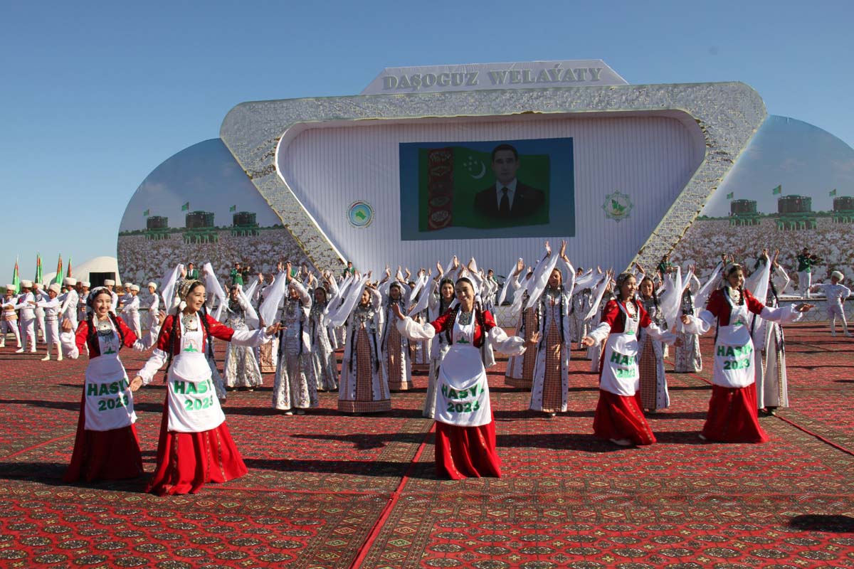 Today, taking into account soil and climatic conditions, farmers of Dashoguz velayat have joined the 2023-Cotton Harvest. At the meeting of the Cabinet of Ministers held on August 31, the head of state, having given his blessing to the collection of “white gold”, addressed the venerable elders with a request to launch traditionally with the words “Bismilla!” an important campaign.