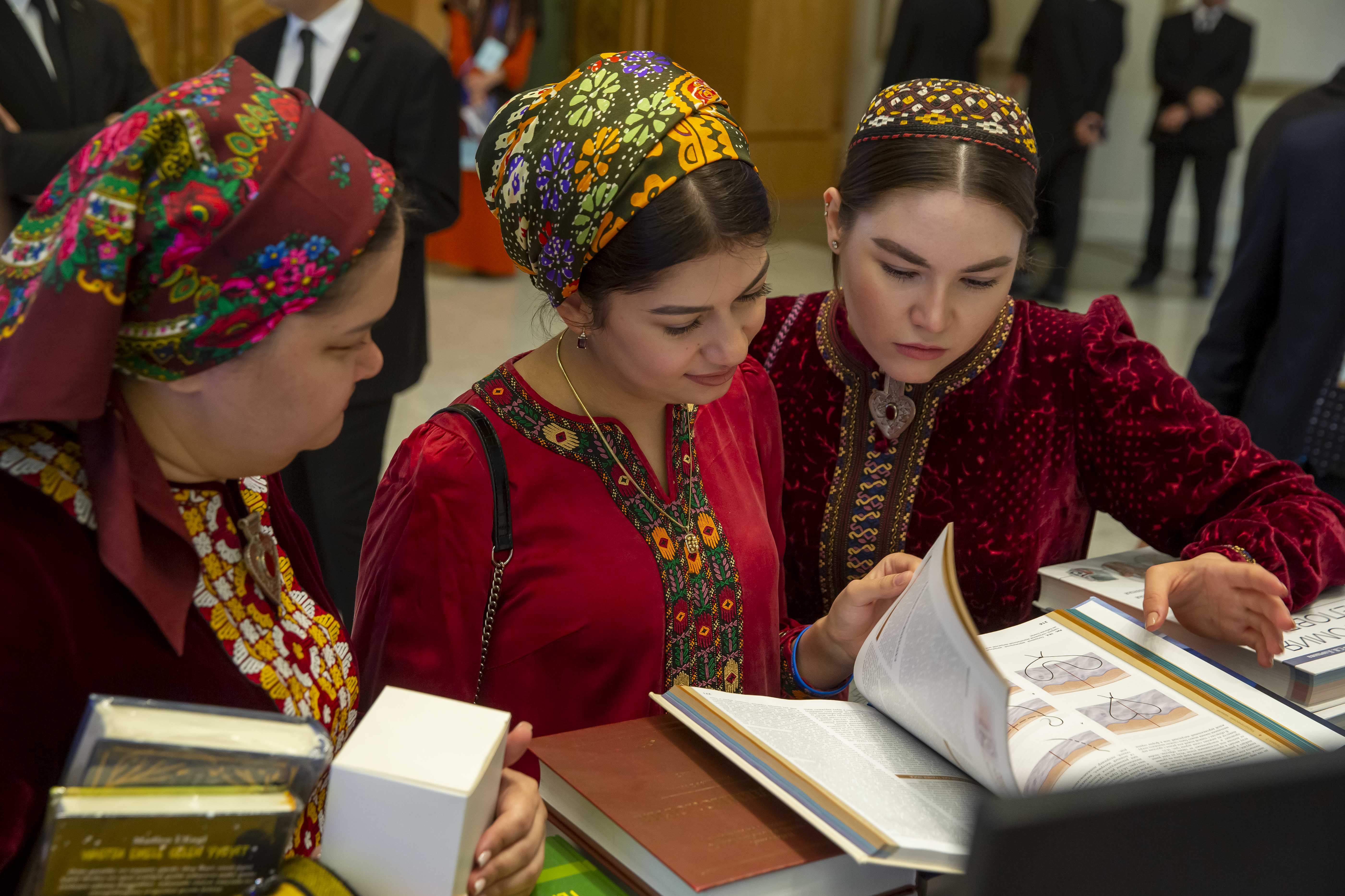 The scientific works of the National Leader of the Turkmen people, Chairman of the Halk Maslahaty of Turkmenistan Gurbanguly Berdimuhamedov are also demonstrated at the stand.
