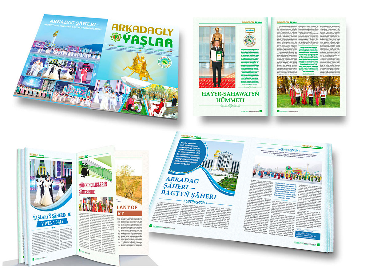 The editorial staff shared with readers the article about the Memorial Day, observed in October. The magazine again reflects the theme of the first smart city in Turkmenistan; the article is called «Arkadag şäheri – bagtyň şäheri».