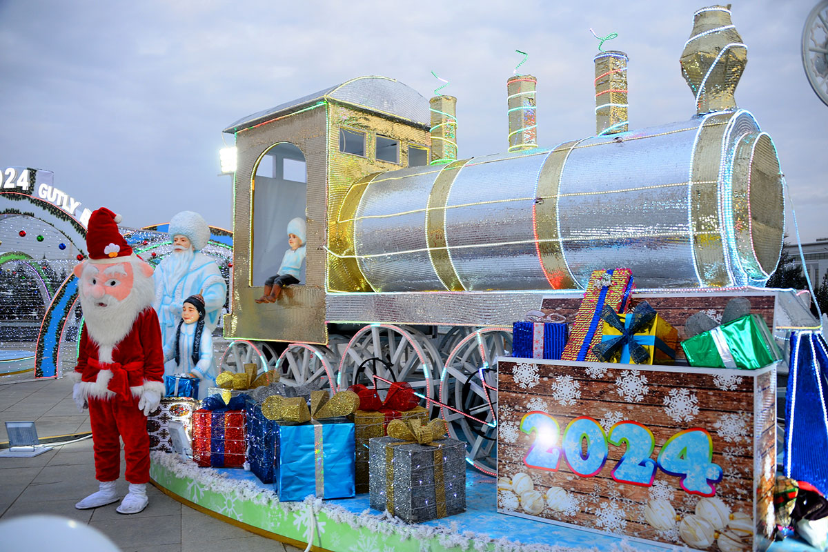 Then the New Year’s cortege heads to the New Year tree in Arkadag city, where a festive concert was organized. The next place of destination was the building of the City Communications Department, where Ayaz Baba, through digital communication, congratulates everyone on the upcoming New Year and invites everyone to the Main New Year tree of the country, located in Ashgabat.