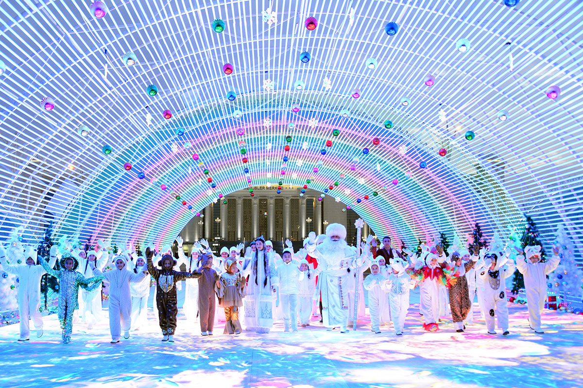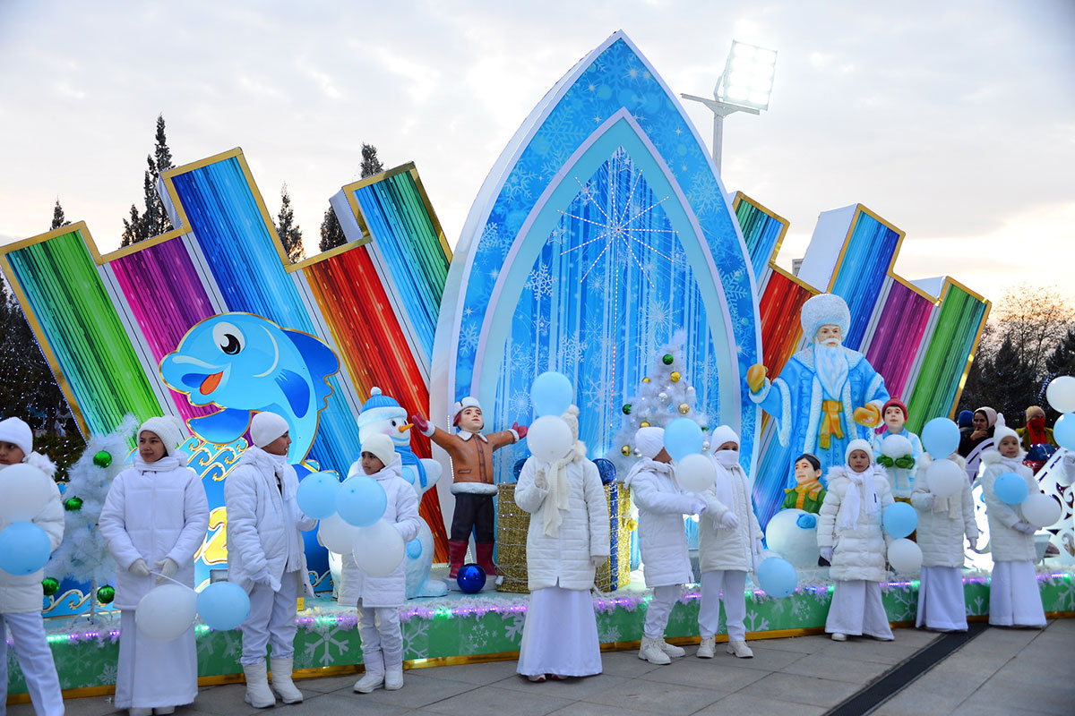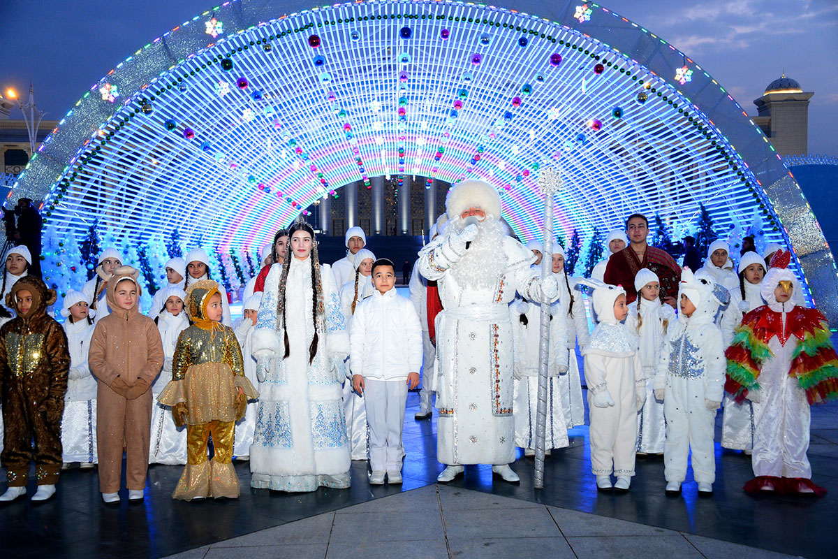 According to established tradition, the hub of the celebrations was the square in front of the Älem Cultural and Entertainment Center, located in one of the picturesque corners of the capital – at the foot of the Kopetdag Mountains, where the tallest beautiful Christmas tree was installed. A festive fairy-tale town is located here.