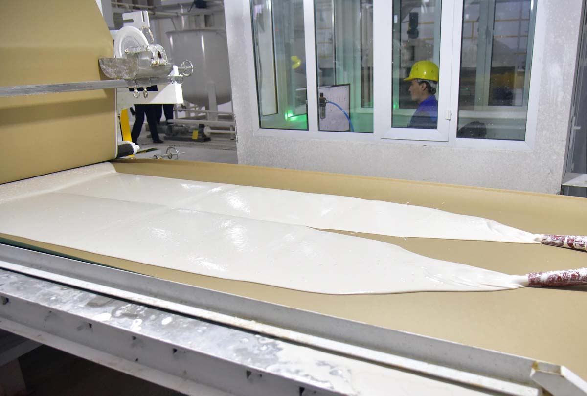 The suspended ceilings made of gypsum and aluminum produced here are exported to countries such as Russia, Azerbaijan, Uzbekistan and Kyrgyzstan.