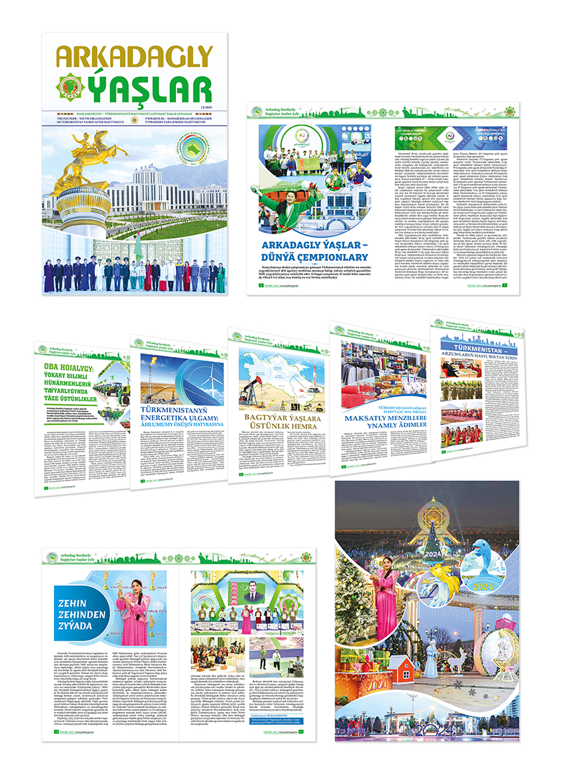 The milestones and accomplishments of the Year «Happy Youth with Arkadag Serdar» covered different areas. These achievements are highlighted in the articles «Berkarar döwletiň ykdysady gadamlary», «Oba hojalygy: ýokary bilimli hünärmenleriň taýýarlygynda täze üstünlikler» and «Türkmenistanyň energetika ulgamy: ählumumy ösüşiň hatyrasyna».