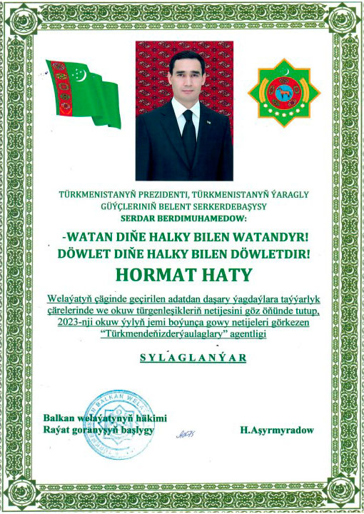 As a result of their coordinated efforts, operational decisions are made and practical steps are taken to identify the location of an oil tanker fire and oil spill, eliminate negative consequences, and determine the amount of funds and resources required for this. Reports on actions taken and recommendations are submitted to the Central State Commission of Turkmenistan for Emergency Situations. The prompt deployment of the Emergency Management Center in the Turkmenbashy International Seaport, determination of necessary actions and decision-making in emergency situations of natural and man-made nature in the Caspian Sea was highly appreciated by the leadership of the Balkan velayat. In this regard, the «Turkmendenizderyayollary» Agency was awarded a certificate of honor for the good results shown during 2023 in emergency preparedness activities and exercises conducted in the velayat.