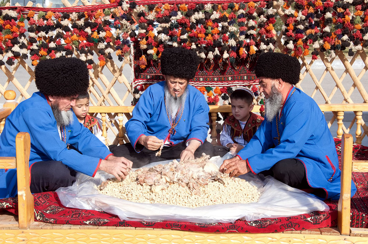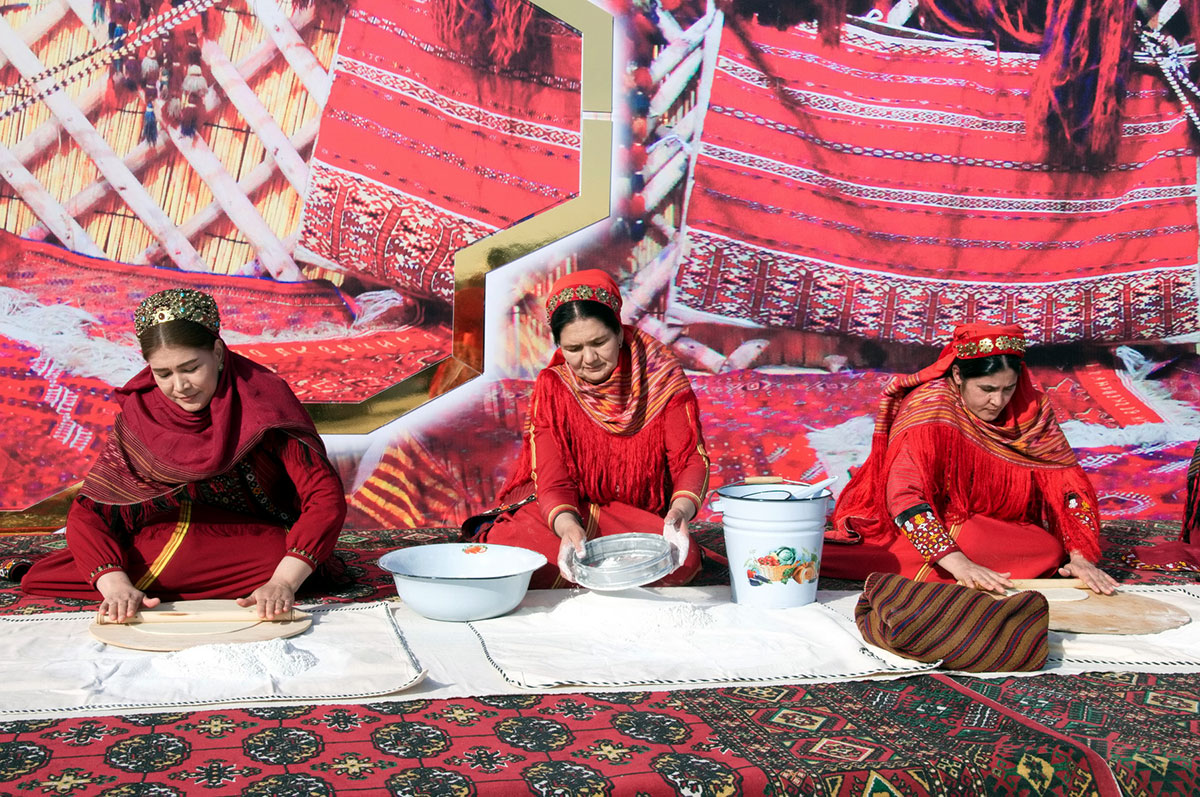 The festive atmosphere penetrated by the spirit of national culture and century-old traditions, was added by the exhibition where achievements of agriculture, products of arts and crafts, work of Turkmen artists-painters and sculptors were displayed. One could also familiarise oneself with peculiarities of preparation of national dishes and enjoy sports events. In a word, a big Turkmen toy was organized there with all traditions and fun inherent in it.