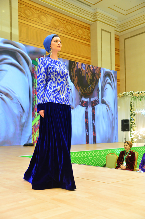 A fashion show of fashion houses «Mähirli zenan», «Nur ýupek», which presented exclusive models of spring and summer collections became a remarkable gift for visitors of the exhibition. Designing and woman’s wear in the national style – a basic area of their activity.